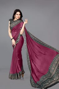 Beautifully designed Indian Traditional ethnic regular wear sarees made of high-quality fabric Chiffon having floral printed contrast border-palav design in plain sari, contrast printed blouse piece. Sourbh Fashion brings you a nice addition to the wardrobe of every fashionable female, who wants to look glamorous and distinct. This sari comes with contrast Chiffon printed blouse fabric, which can be stitched according to your comfort Up to 32 to 42 Inches. This saree is ideal for festivals, occasional, parties and social/friends/family get-together, ceremonies or rituals, business functions wherever you want to flaunt your style. Also saree design and color combination are suitable for girls or women of across all age or region. Wear it with matching accessories to get complemented on next ethnic wear look. Sourbh Sarees brings together the Ethnic Fashion from the Indian subcontinent to Indian wear lovers across the world, with a variety of popular and trendy ethnic products for various occasions – festive wear, farewell parties wear, regular ethnic wear to contemporary Indian suits-salwar kameez and beachwear.
