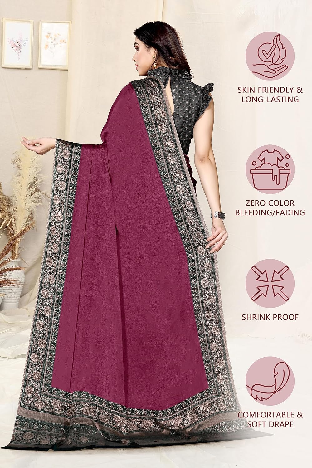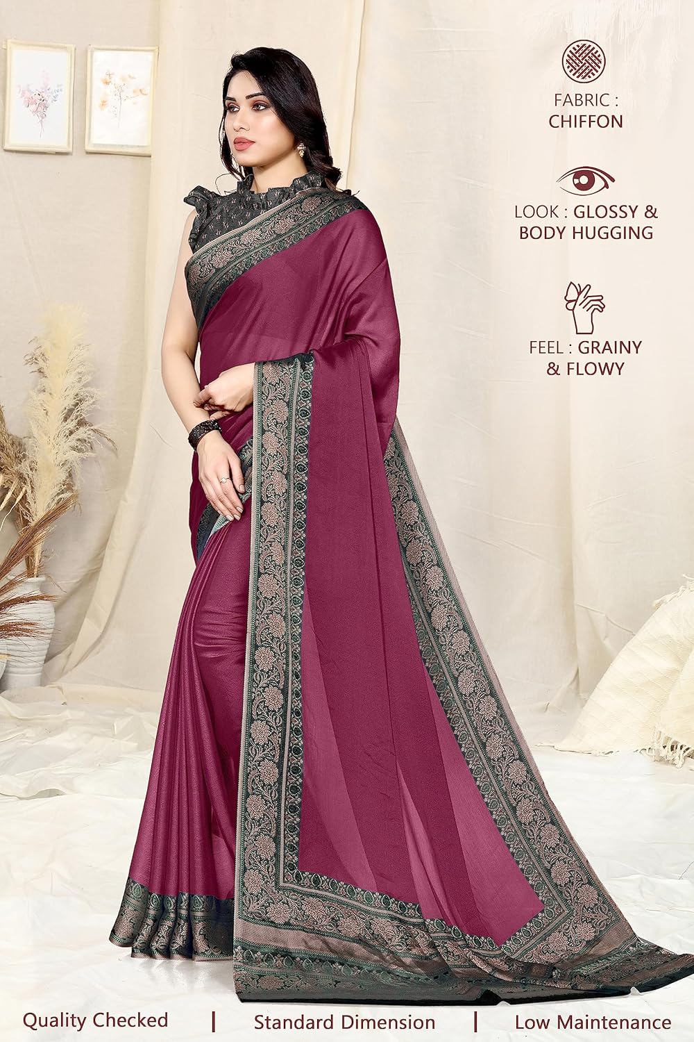 MIRCHI FASHION Women’s Chiffon Floral Border-Palav Printed Saree with Blouse Piece by VintaVool