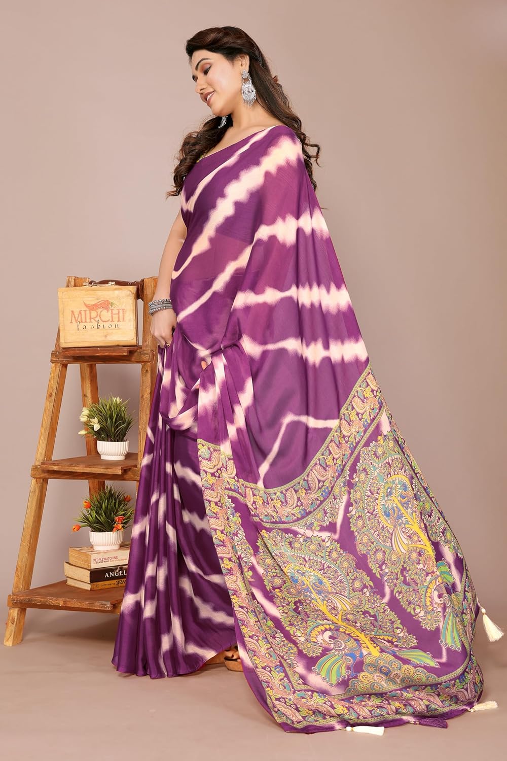 Beautifully designed Indian Traditional ethnic regular wear sarees made of high-quality fabric Chiffon having stylish leheriya printed design with madhubani printed pallu and tassels. Mirchi Fashion brings you a nice addition to the wardrobe of every fashionable female, who wants to look glamorous and distinct.