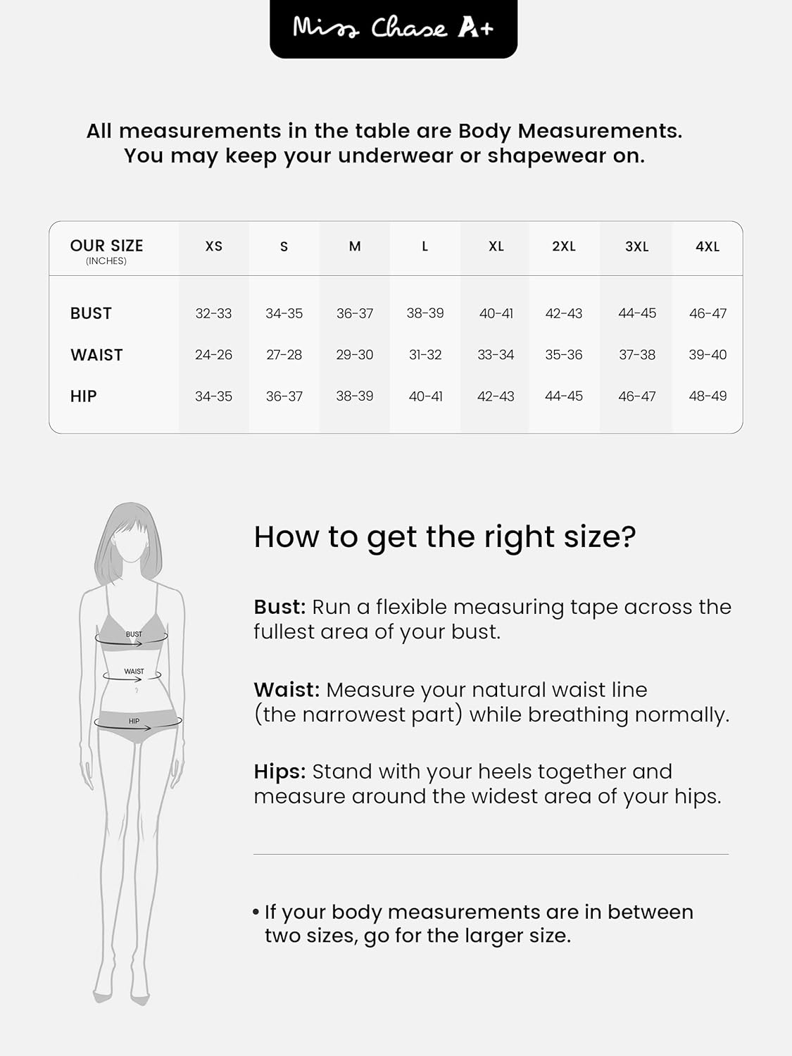 At Miss Chase A+, we go beyond size labels to redefine beauty. With its exquisite fit and unmatched comfort, it is designed to celebrate the uniqueness of Indian women. Every woman shines brighter with Miss Chase A+, which is why our collection motivates and uplifts women.