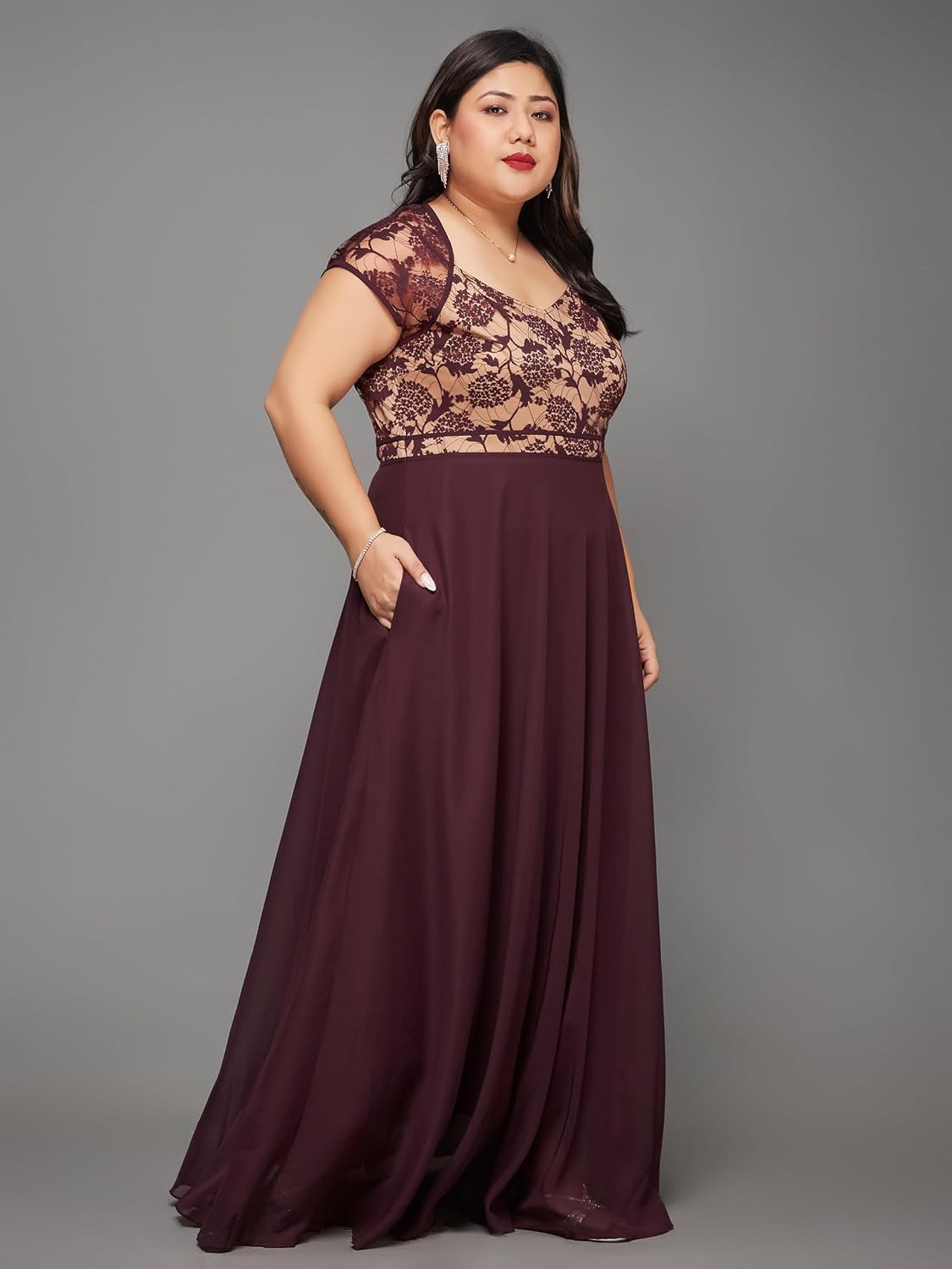 Miss Chase A+ Women’s Georgette Fit and Flare Maxi Dress by VintaVool