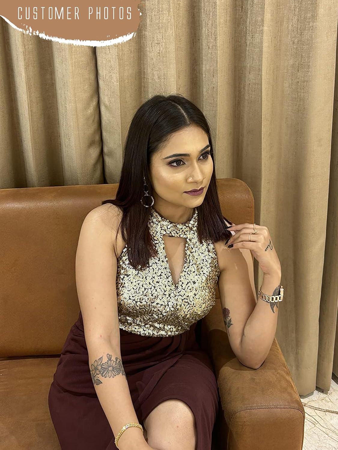 Spruce up your wardrobe with this Dress from Miss Chase available on Amazon. You can pair this Solid Midi Embellished Dress with some nice pair of heels and you are good to go. It is perfect for every occasion from a day out with friends or a night of get-togethers with family.