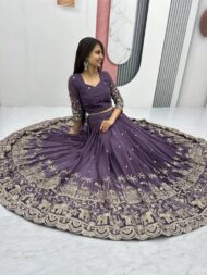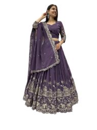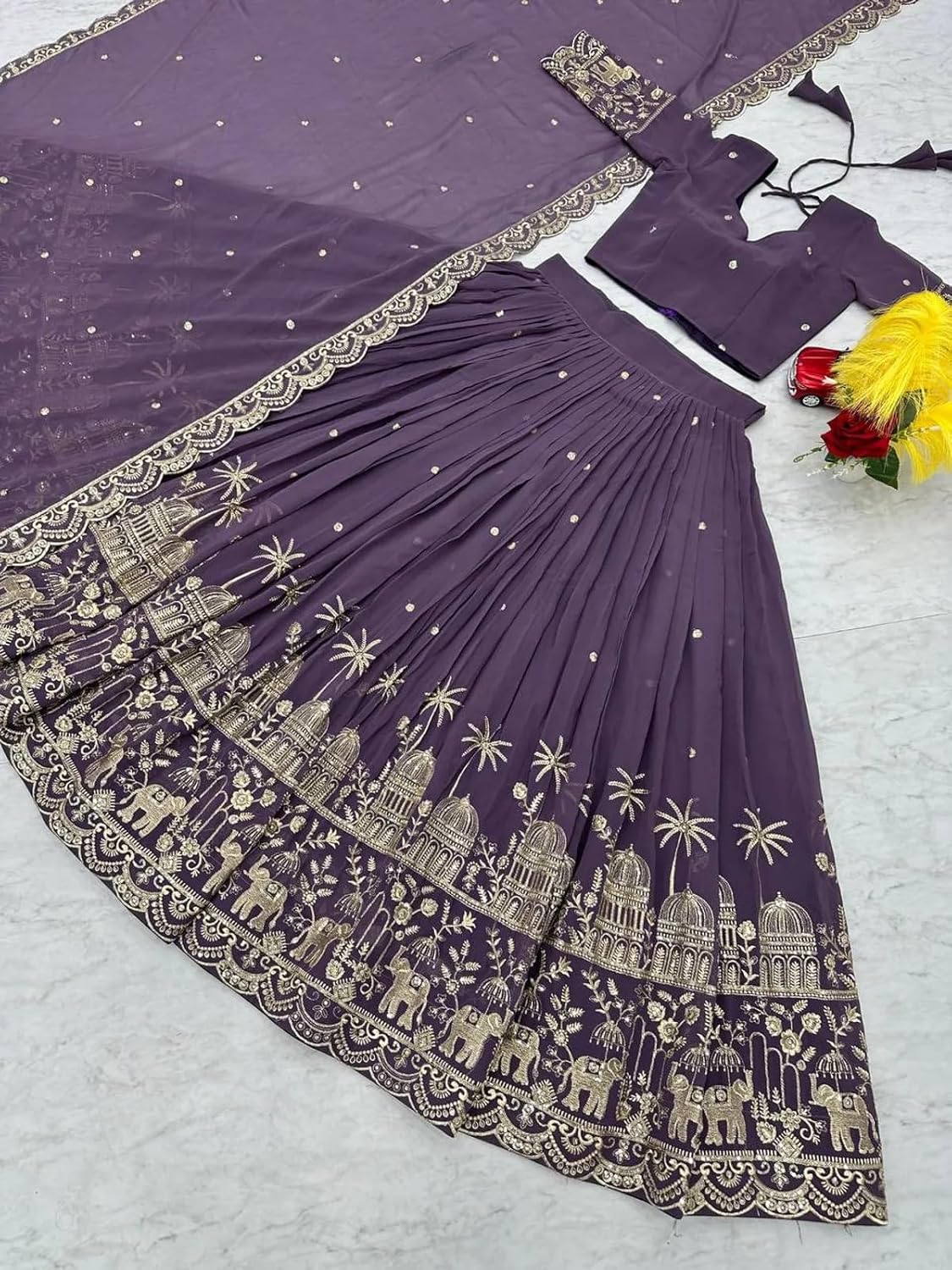 This purple georgette lehenga choli is perfect for weddings receptions or festive gatherings the silver embroidery featuring palace and elephant motifs adds a royal charm to the look the fabric feels smooth and breathable making it easy to wear for long events the fit is comfortable and flattering without needing extra stitching the detailed craftsmanship makes it look much more expensive than it is the purple shade stands out beautifully in daylight and indoor lighting the design is traditional yet trendy appealing to all age groups I loved the compliments I received while wearing it it is ideal for those who want elegance with comfort a perfect traditional outfit that blends beauty with quality