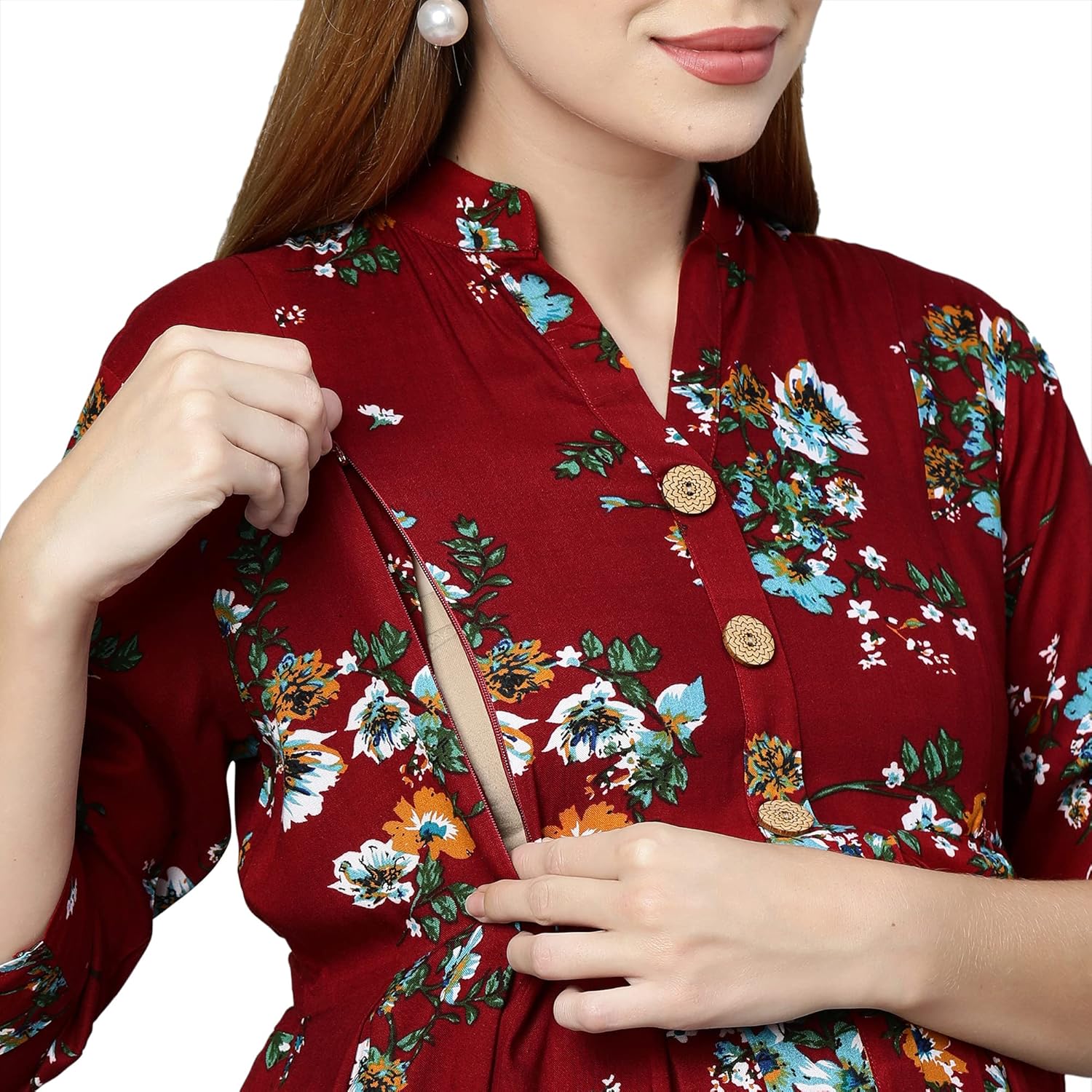 MomToBe Women’s Rayon Maternity Dress/Pregnancy Dress/Easy Breast Feeding/Breastfeeding Dress/Western Dress with Zippers for Nursing Pre and Post Pregnancy by VintaVool