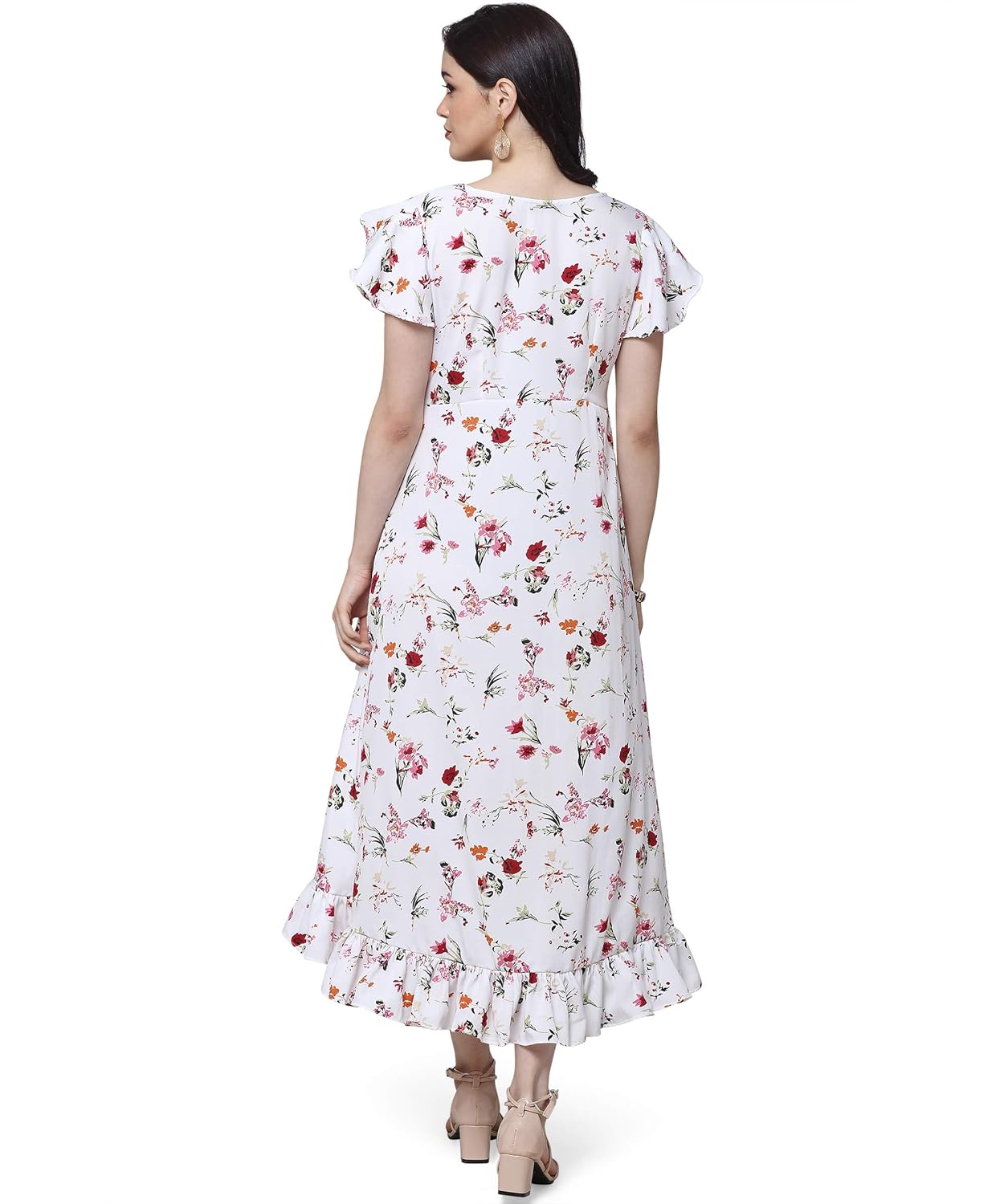 Oomph! all kinds of dresses for both women and girls – dresses for women under 500, frocks for girls new fashion western, women dresses, dress for girls, dresses for women western wear, dresses for women casual, dress for womens new style, frock girls stylish fashion, dress for women western.Dress Style: High-low A-line dress with ruffled hem in wrap-up styleU-neck, butterfly sleeves.Fabric Style: Floral printed fabricStyling Tip: Can be be styled both as a contemporary festive outfit and a playful party outfit.Garment Fit: Garment is made with relaxed fitModel Model is height 5’9″ with bust 34 and is wearing size S.Fabric Type: Garment is made of crepe, which drapes well on all body typesWash Care: First Wash Dry Clean, thereafter Hand wash