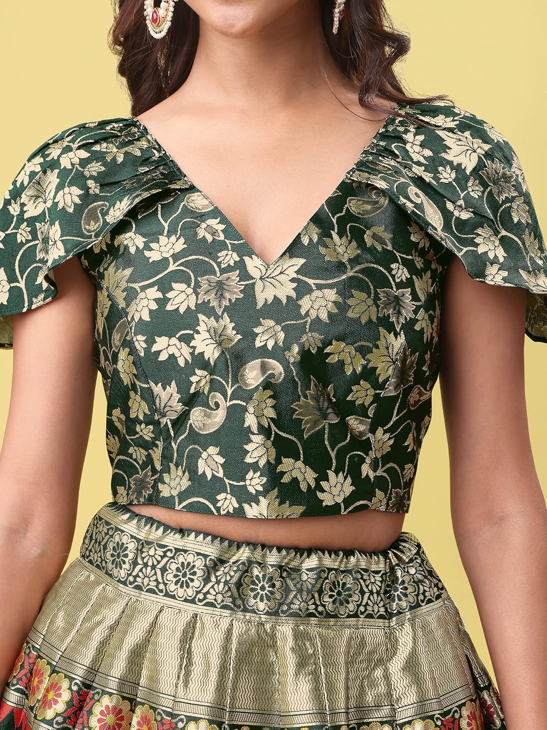 Fabric: – Jacquard; Lehenga Length: – 44 inch, Dupatta Length: – 2.20 mtr; blouse Length: – 1 mtr. Product Consist 1 Choli 1 Lehenga 1 Dupatta; Style: – Anarkali. It is unstitched blouse.