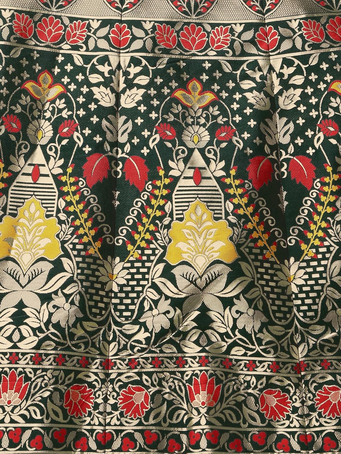 Received the product for 999. Wooven material and the colour combination of threads seemed nice. I am not a big fan of the duppatta and would rather buy a green one from local shop. It was a gift and the recipient was really satisfied.