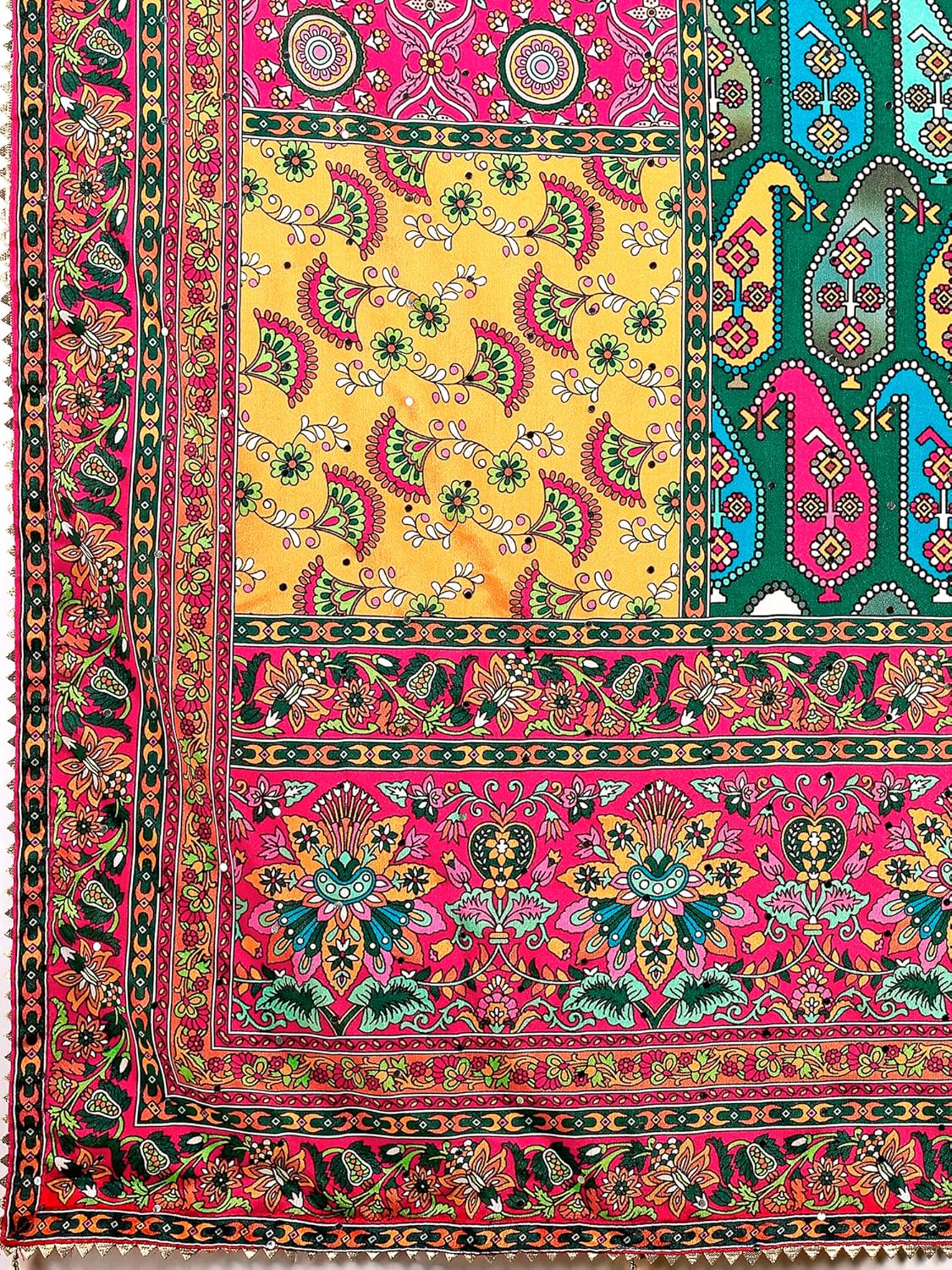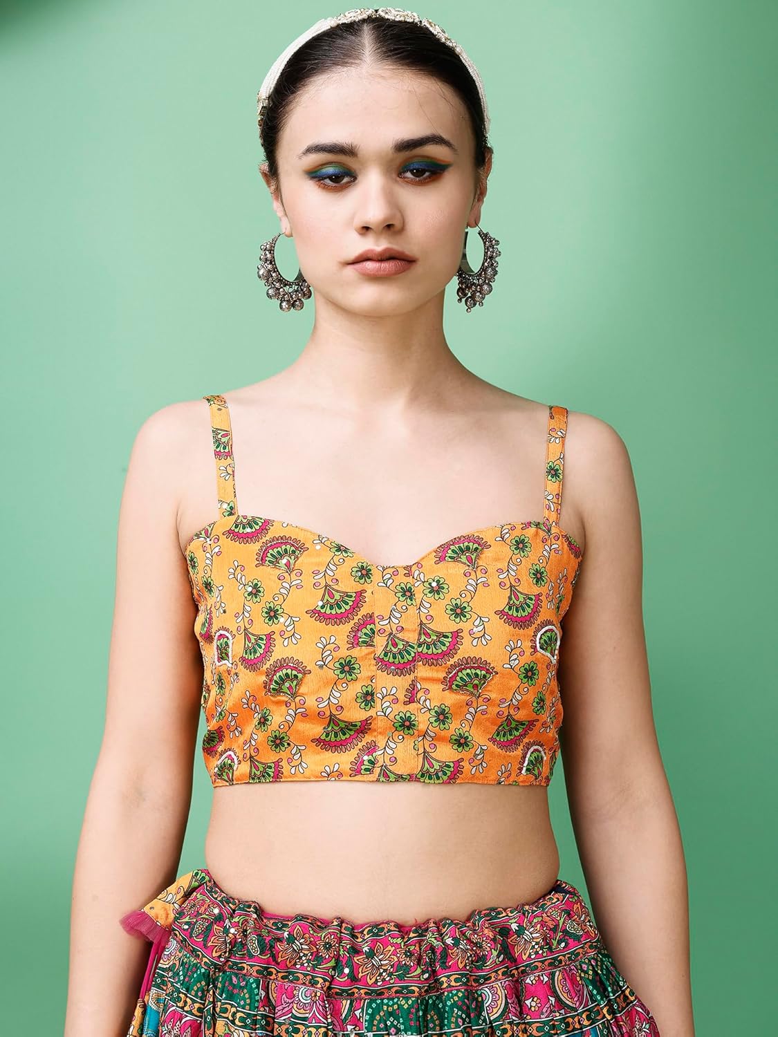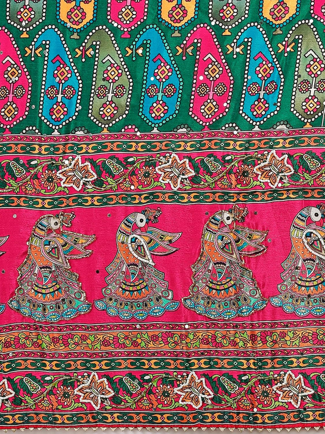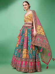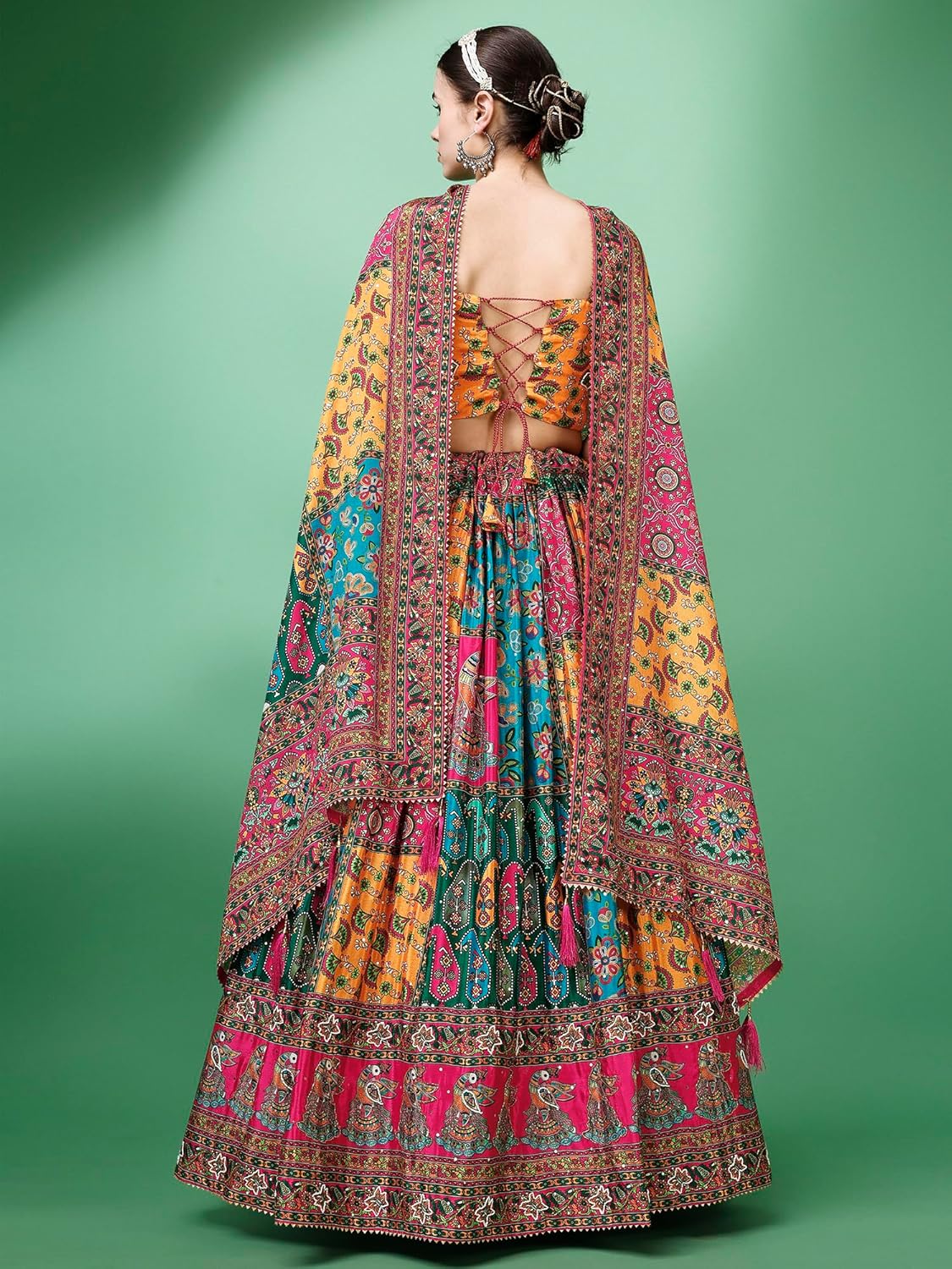 PURVAJA Women’s Silk Chinoon Semi-Stitched Lehenga Choli Printed Fabric Set (5-Prn-Lhn) by VintaVool