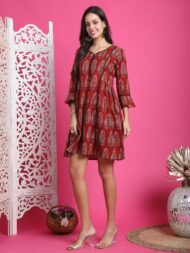 Rajnandini Women’s A-Line Above The Knee Pure Cotton Jaipuri Printed Western Dress (JOPLJPR311-P_P) by VintaVool