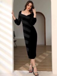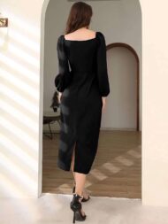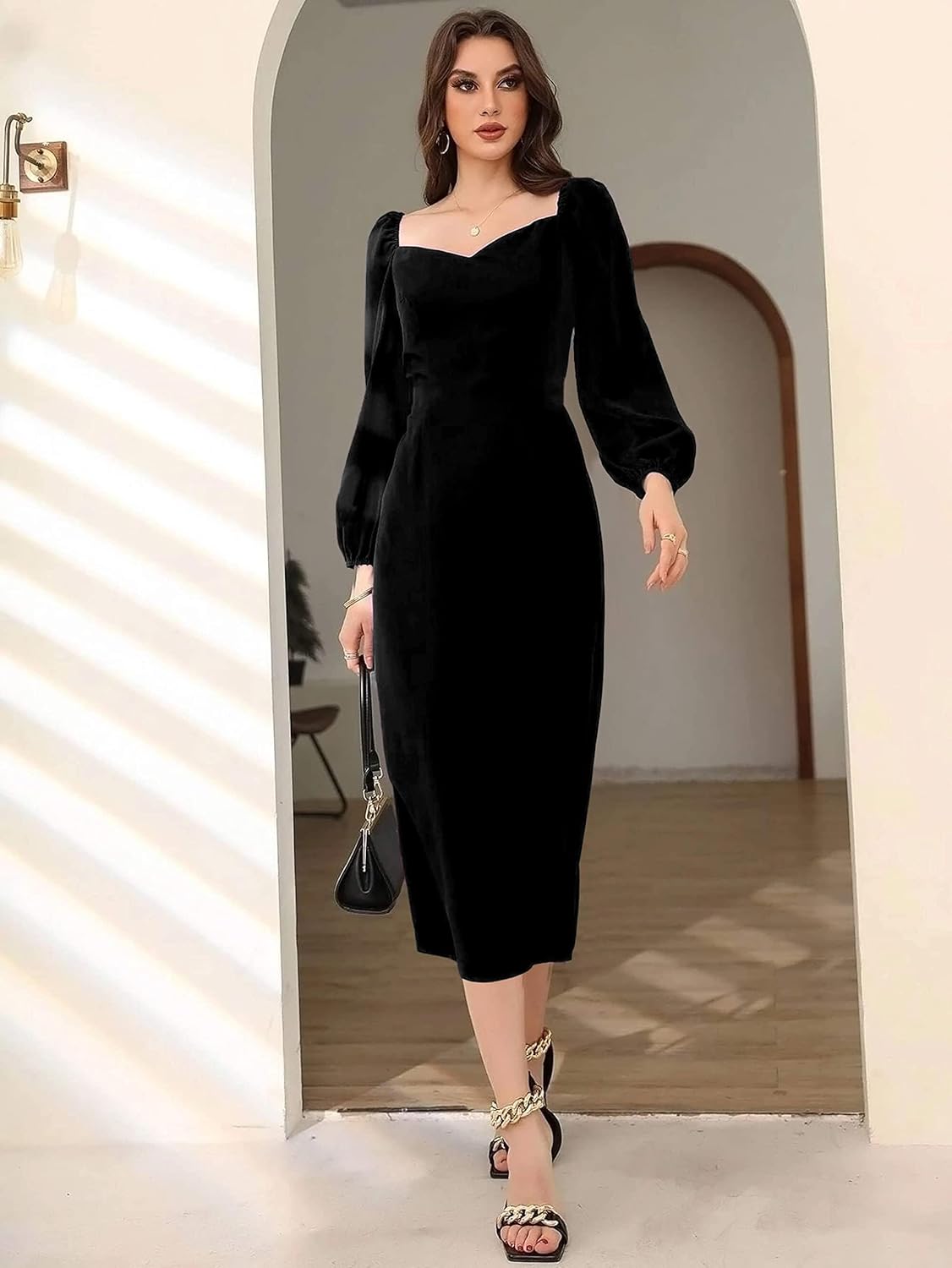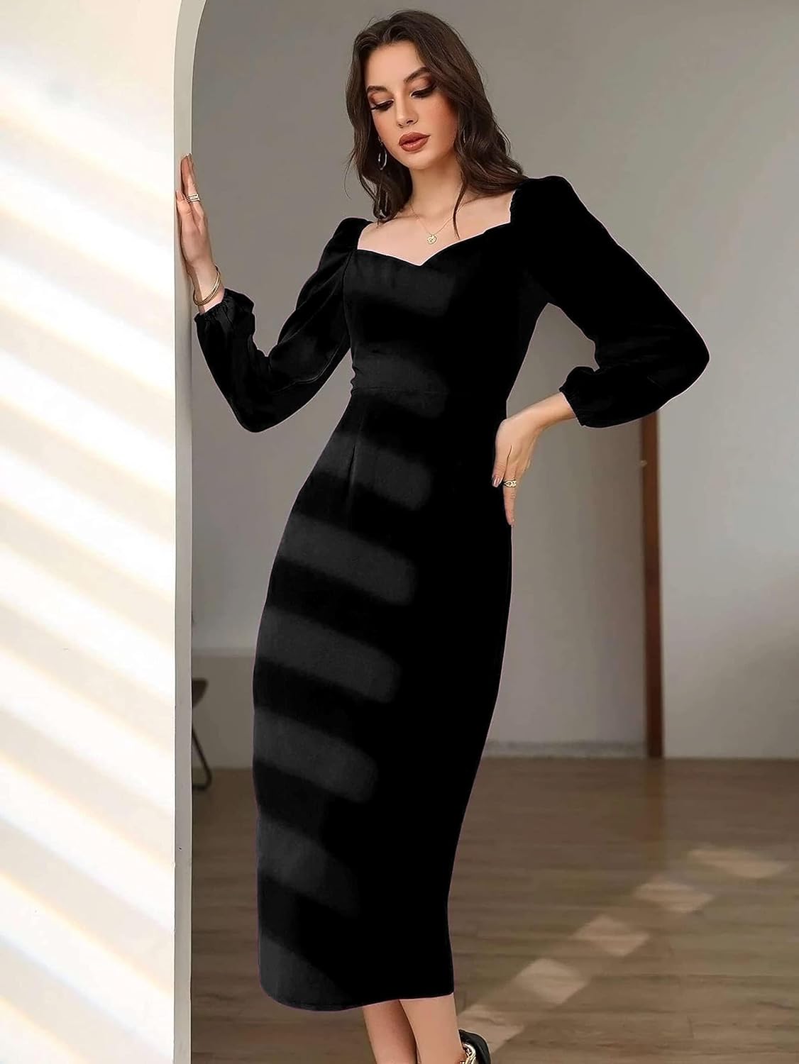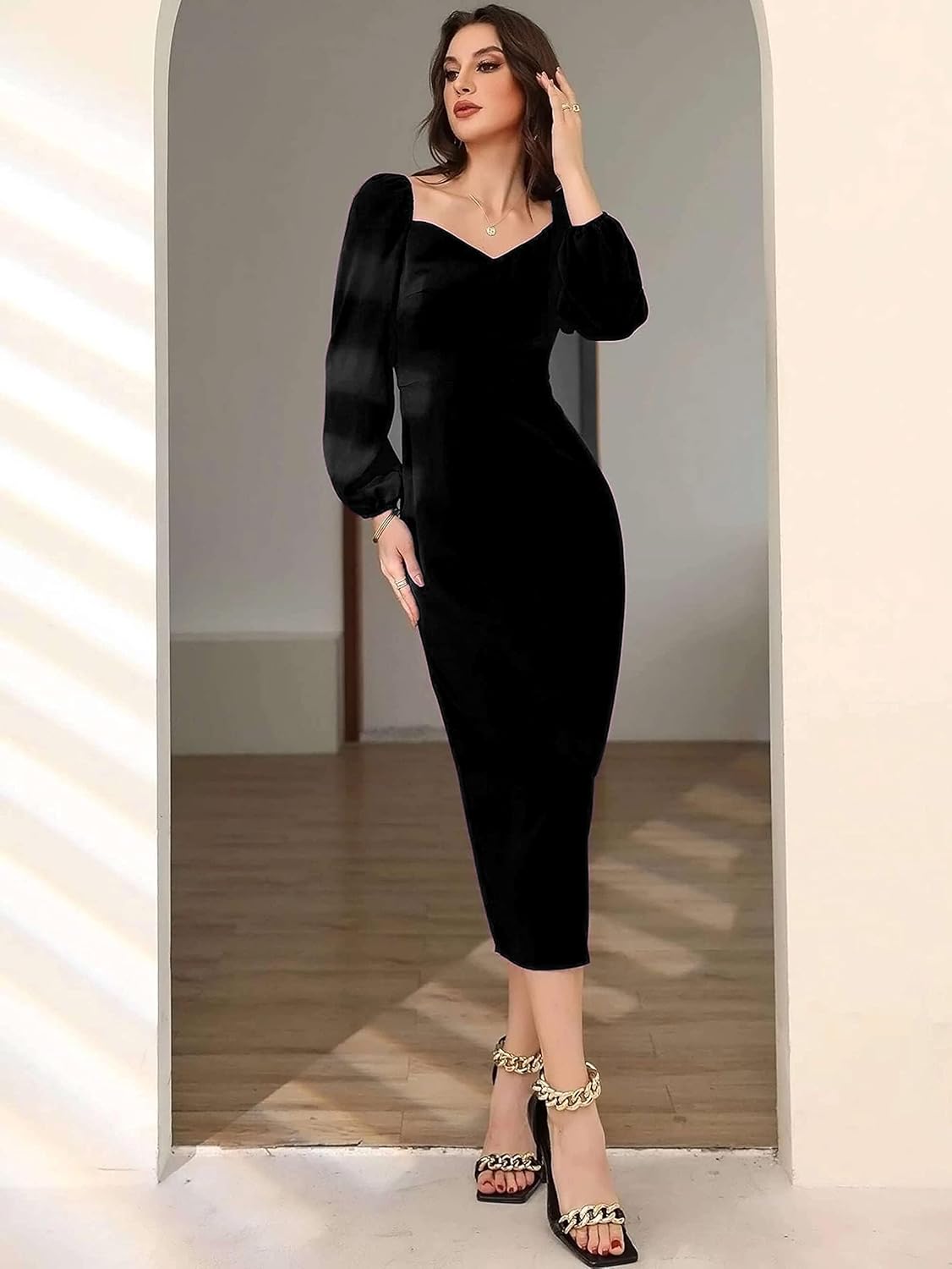 8 reviews for rosery paris Midi Bodycon Bishop Puff Sleeve One Piece Dress Causal Formal by VintaVool