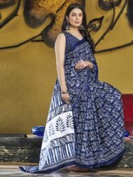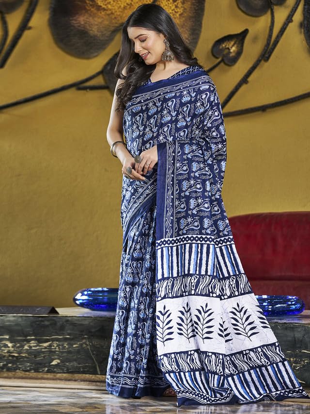 Satrani Women’s Cotton Printed & Ready To Wear Saree with Unstitched Blouse Piece by VintaVool