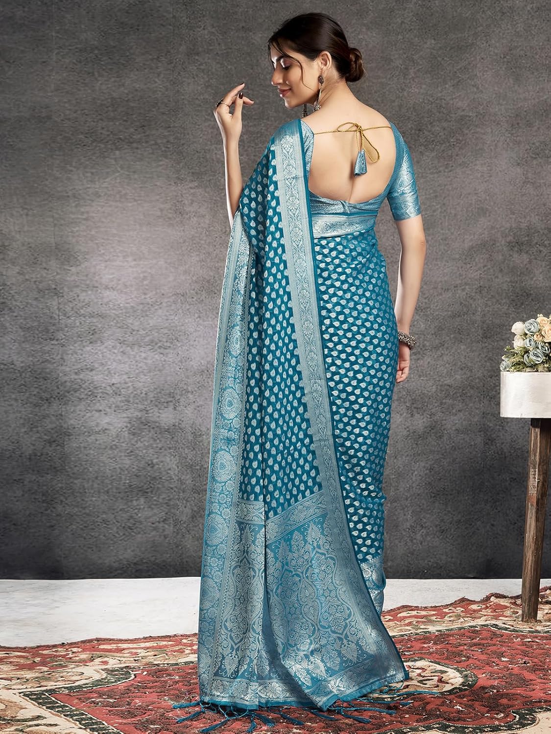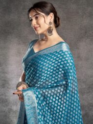 Explore The Collection Of Beautifully Designed Sarees From Satrani. Each Piece Is Elegantly Crafted Banarasi Jacquard And Teal Blue & Silver Colors Saree Will Surely Add To Your Wardrobe. Pair This Piece With Heels Or Flats For A Graceful Look