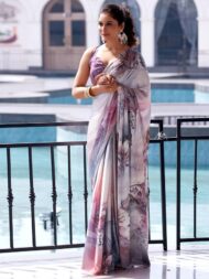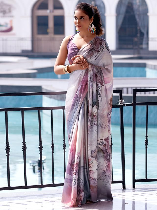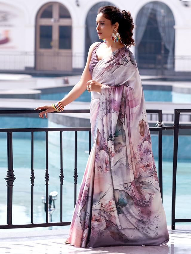 Explore The Collection Of Beautifully Designed Sarees From Satrani. Each Piece Is Elegantly Crafted Digital Print And Mauve & Cream & Multi Colors Saree Will Surely Add To Your Wardrobe. Pair This Piece With Heels Or Flats For A Graceful Look