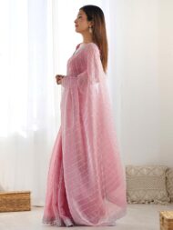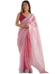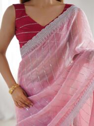 Satrani Women’s Shimmer Chiffon Embroidery And Sequin Work Saree with Unstitched Blouse Piece by VintaVool
