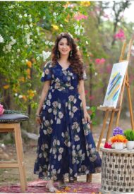 The Liva fabric in this attractive color ready to wear gown dress will make sure that the fitting of this beautiful readymade gown dress looks elegant on you. Crafted from georgette fabric, it is light in weight and will be soft against your skin. Its unique design and beautiful colour will fetch a lot of second glances as you club it with contrast colored pumps and flashy accessory. Our Products are Made and stitched using high grade fabrics and yarns under the strict surveillance of our well-versed Executives. It is capable of making you look gorgeous. Wear it and put your step in the world of fashion. It looks stunning every time you match it with accessories.