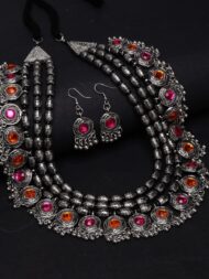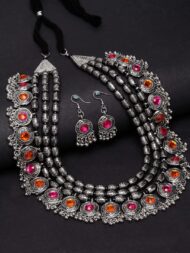 Shining Diva Fashion Latest Stylish Fancy Oxidised Silver Tribal Necklace Jewellery Set for Women (12164s), Multicolour, One by VintaVool