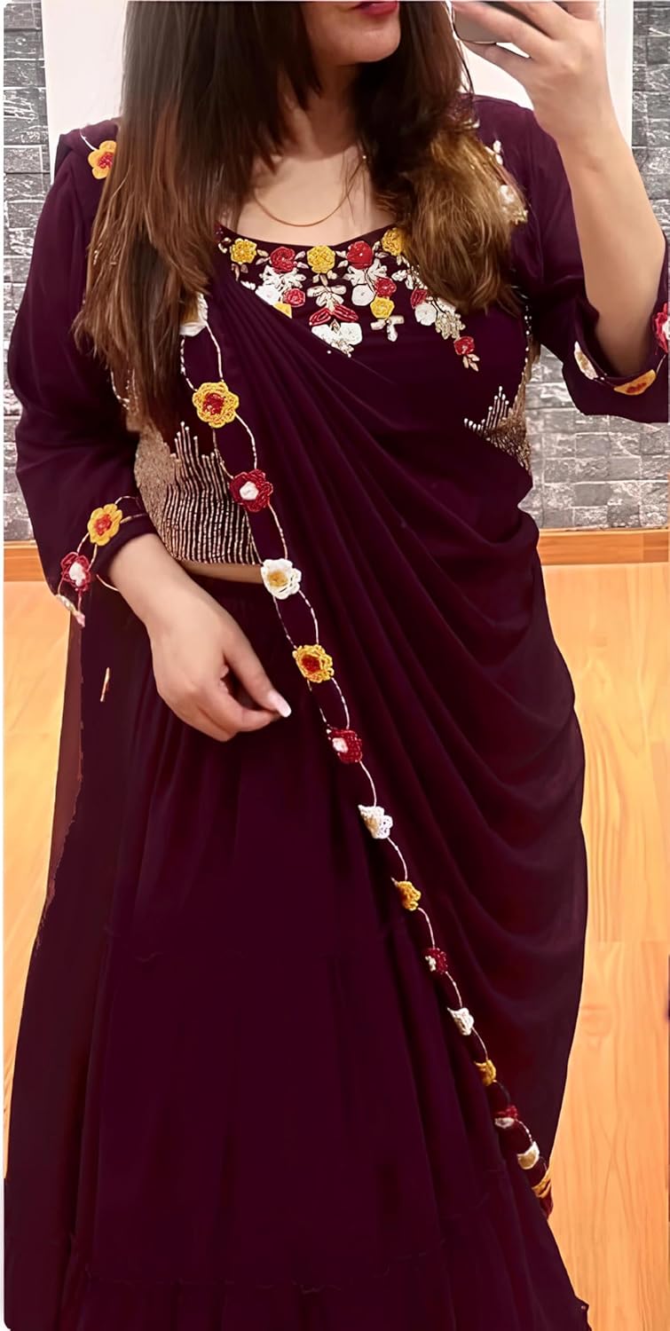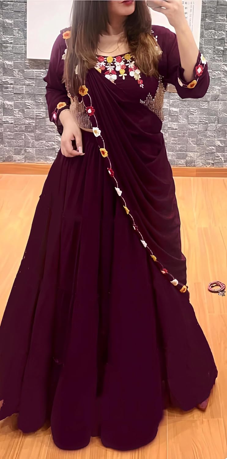 2 reviews for SHYAMLATA Women’s Embroidered Georgette Crop Top Lehenga Choli For Women (Party-Wedding-Bridal-Latest-New-Stylish; Free Size) by VintaVool