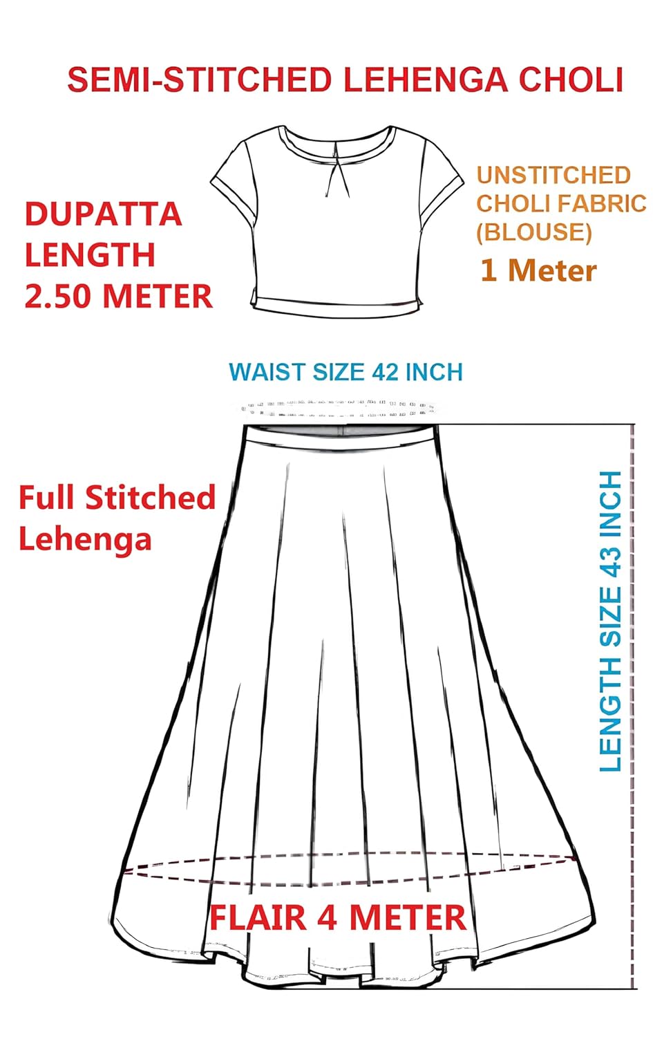 You will get an unstitched choli with this lehenga. It comes in a one-metre length to meet your requirements.