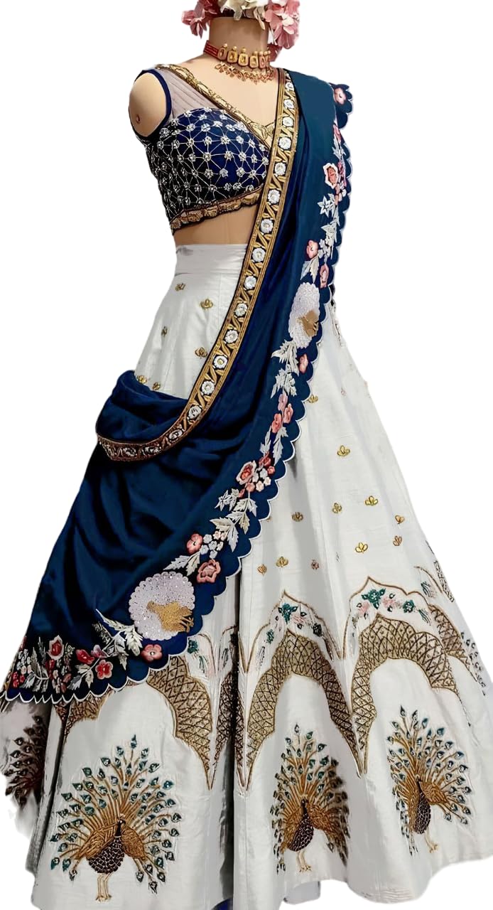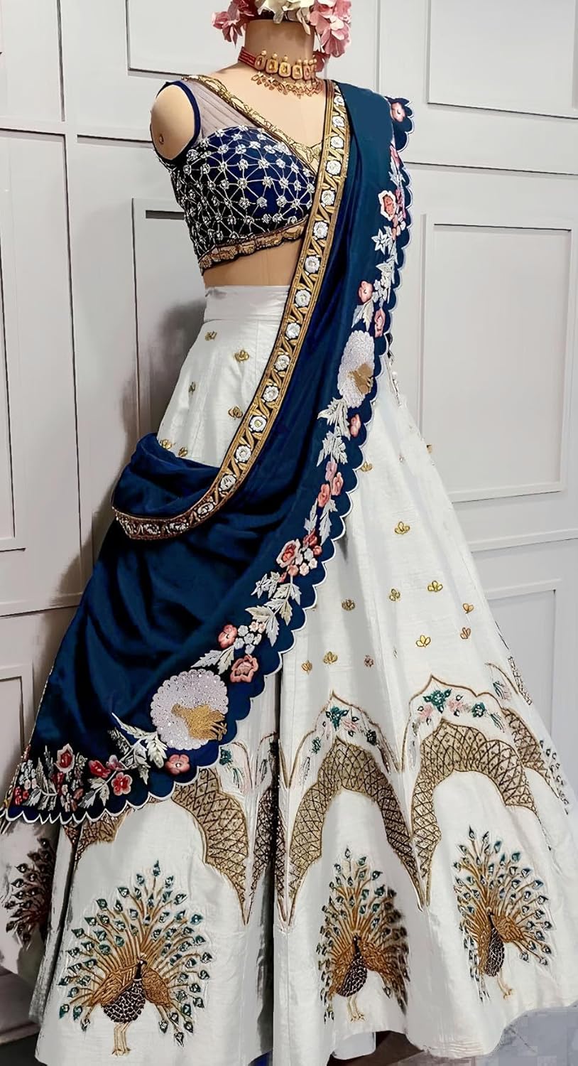Generic Name : SHYAMLATA Women’s Heavy Sequins Embroidered Bridal Wedding New Designer White Lehenga Choli with Dupatta