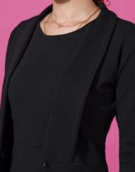 The coat is very long, and dress is lower than the knee