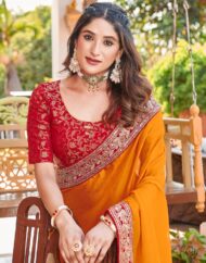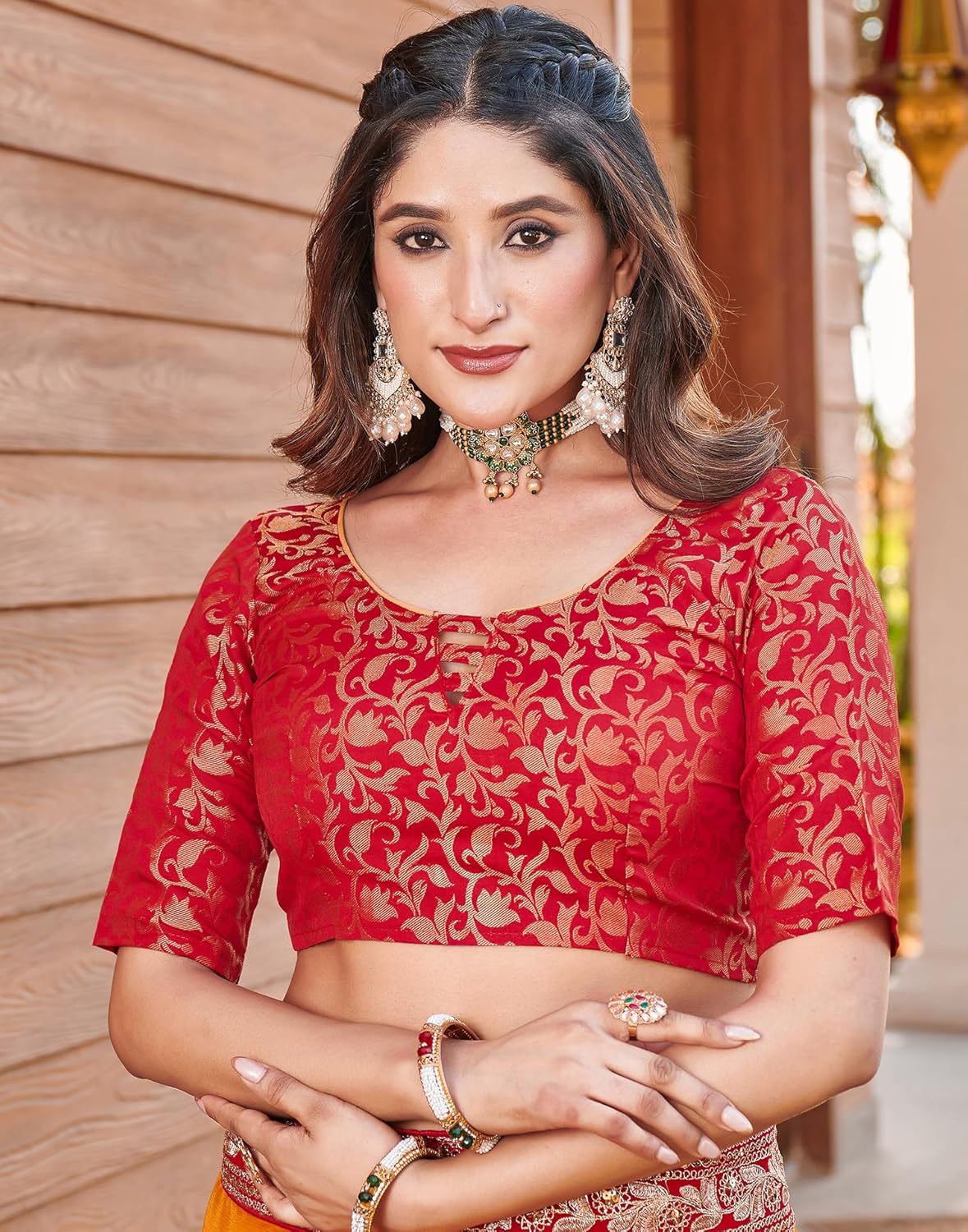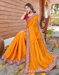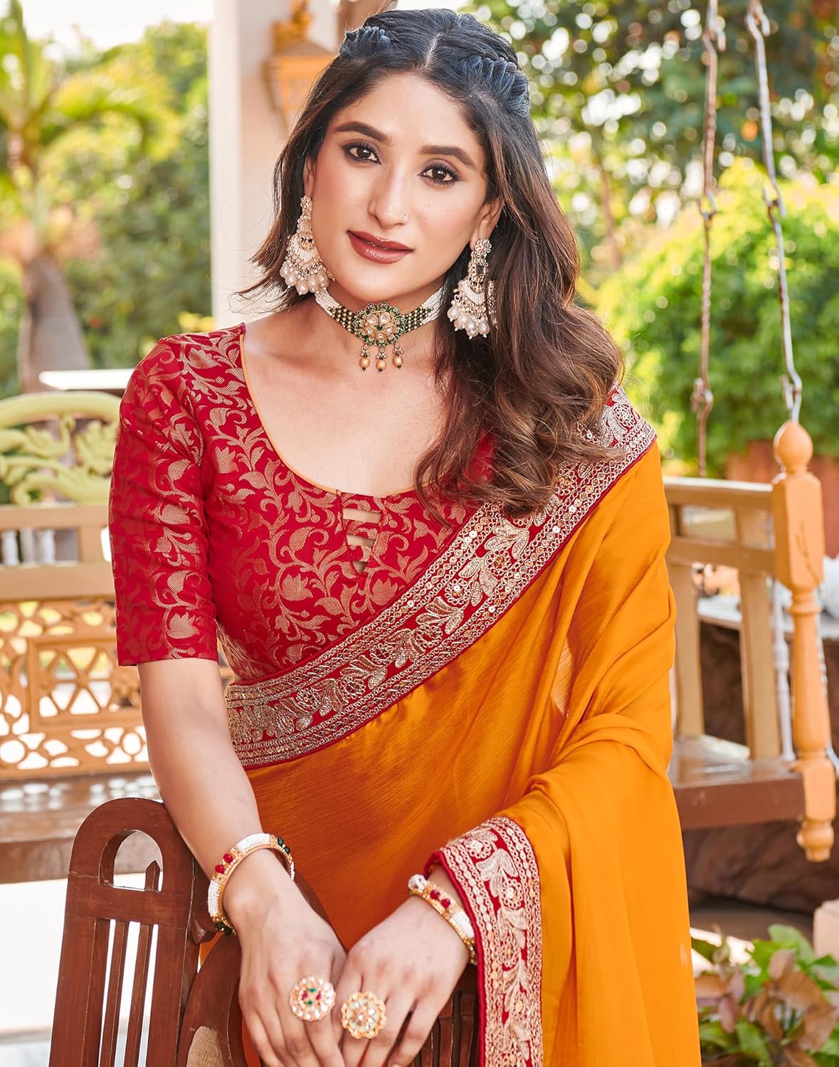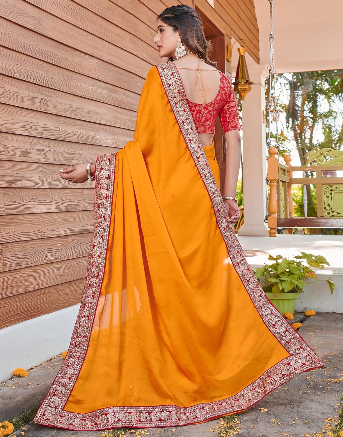 SIRIL Women’s Chiffon Sequence Embroidery Lace Saree with Unstitched Blouse Piece by VintaVool