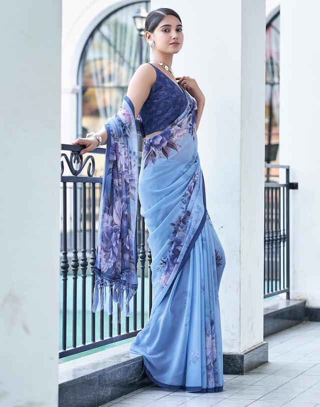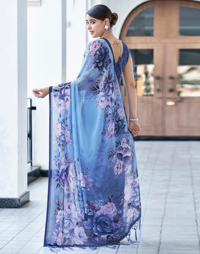 SIRIL Women’s Georgette Floral Printed Saree With Unstitched Blouse Piece by VintaVool