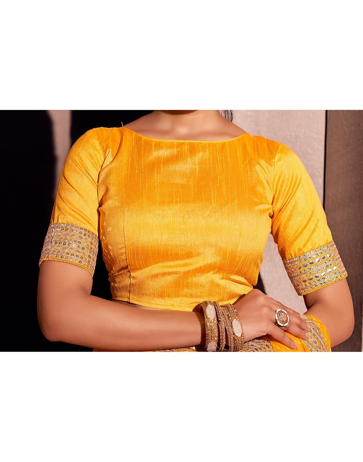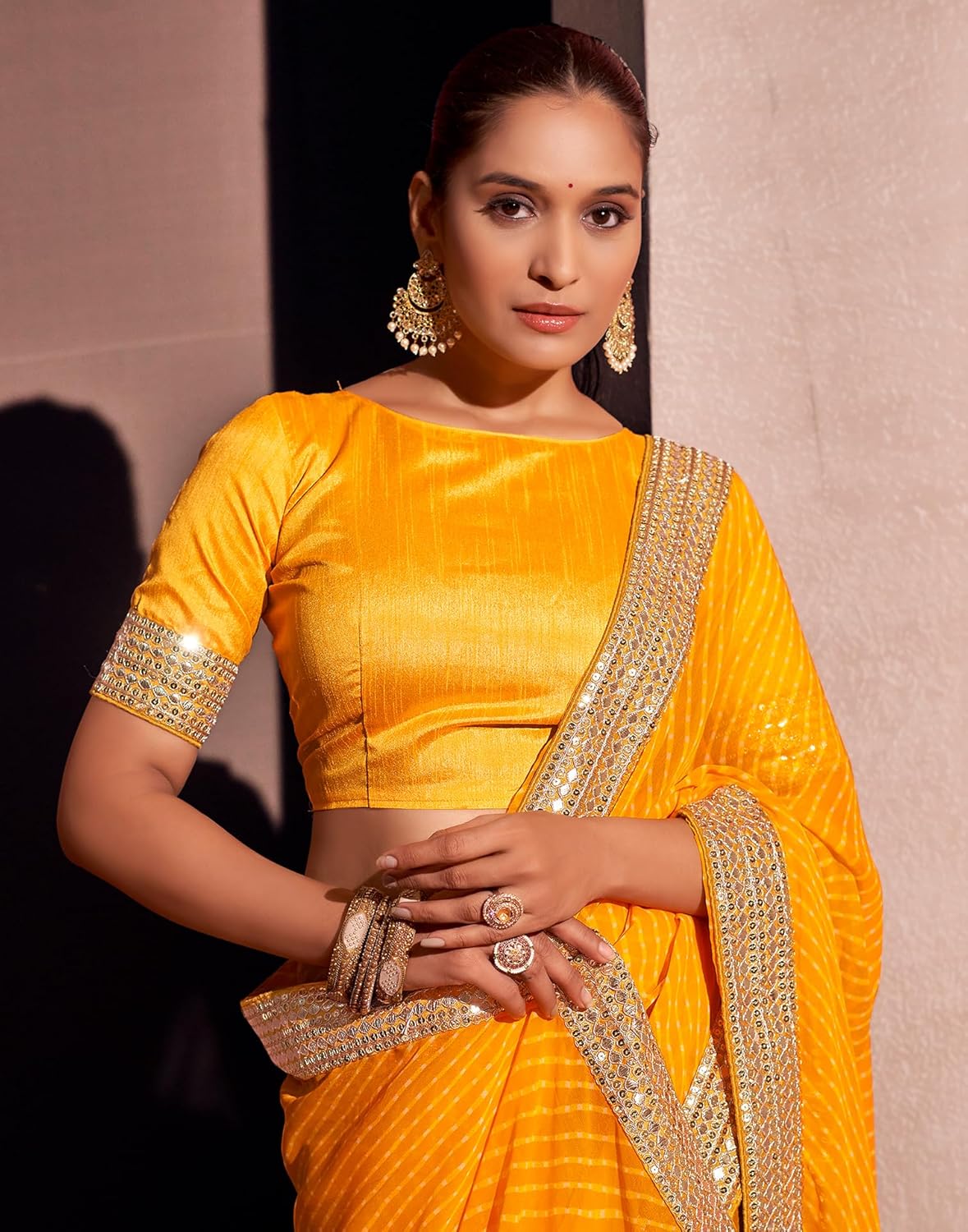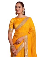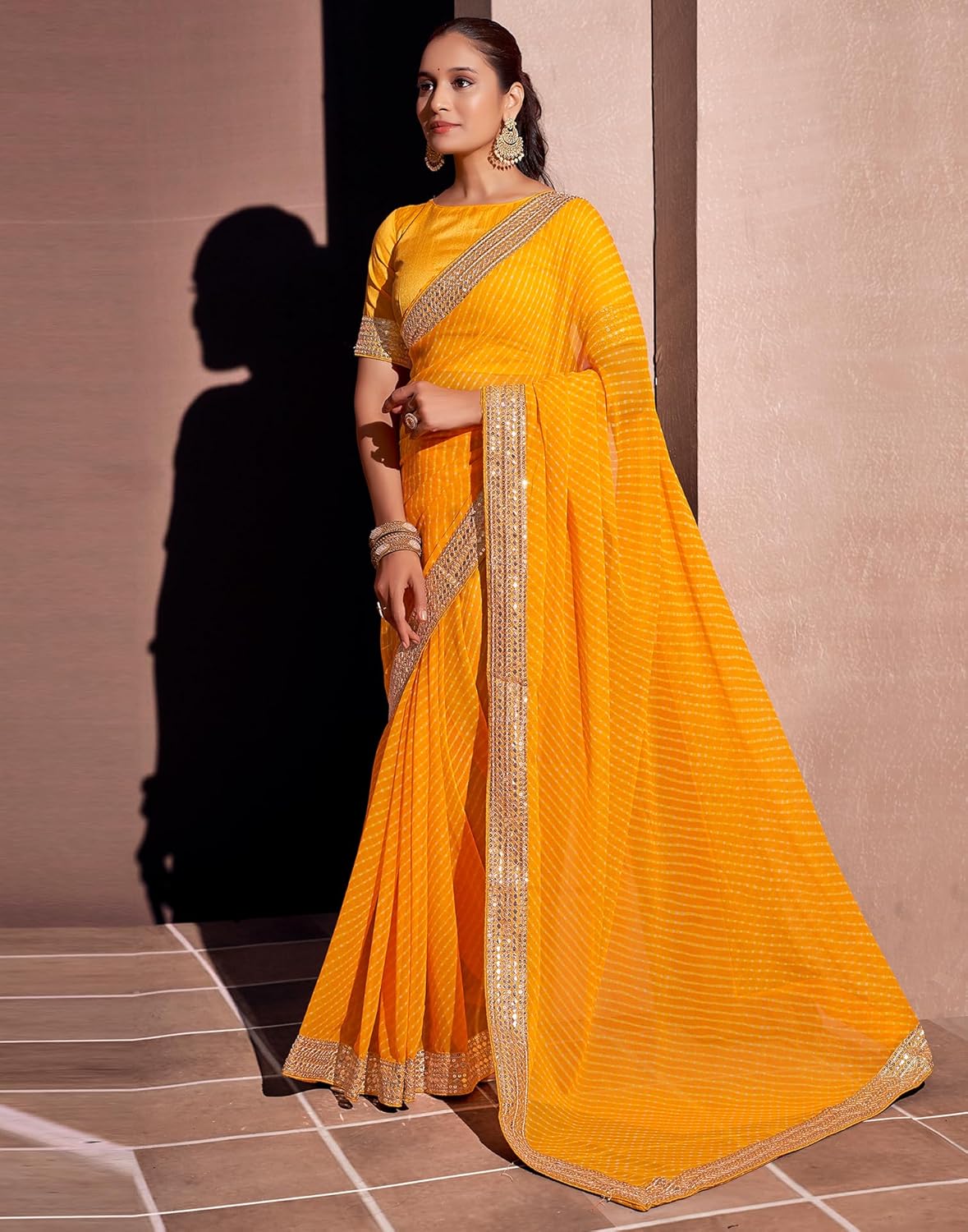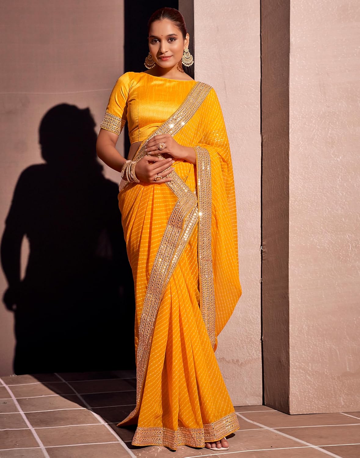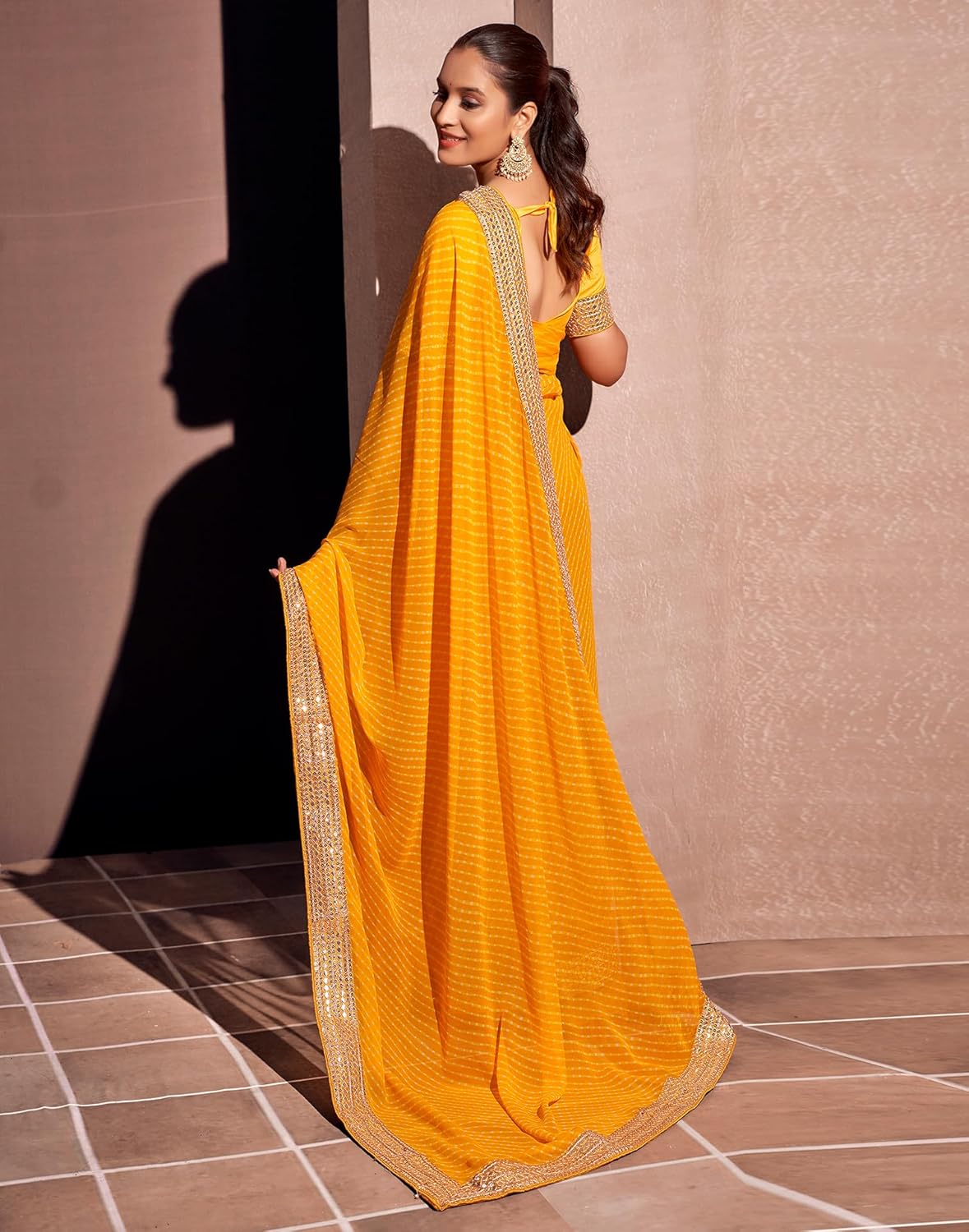 SIRIL Women’s Georgette Laheriya Printed Embroidery Lace Boarder Saree With Unstitched Blouse Piece by VintaVool