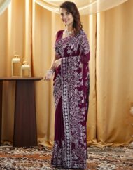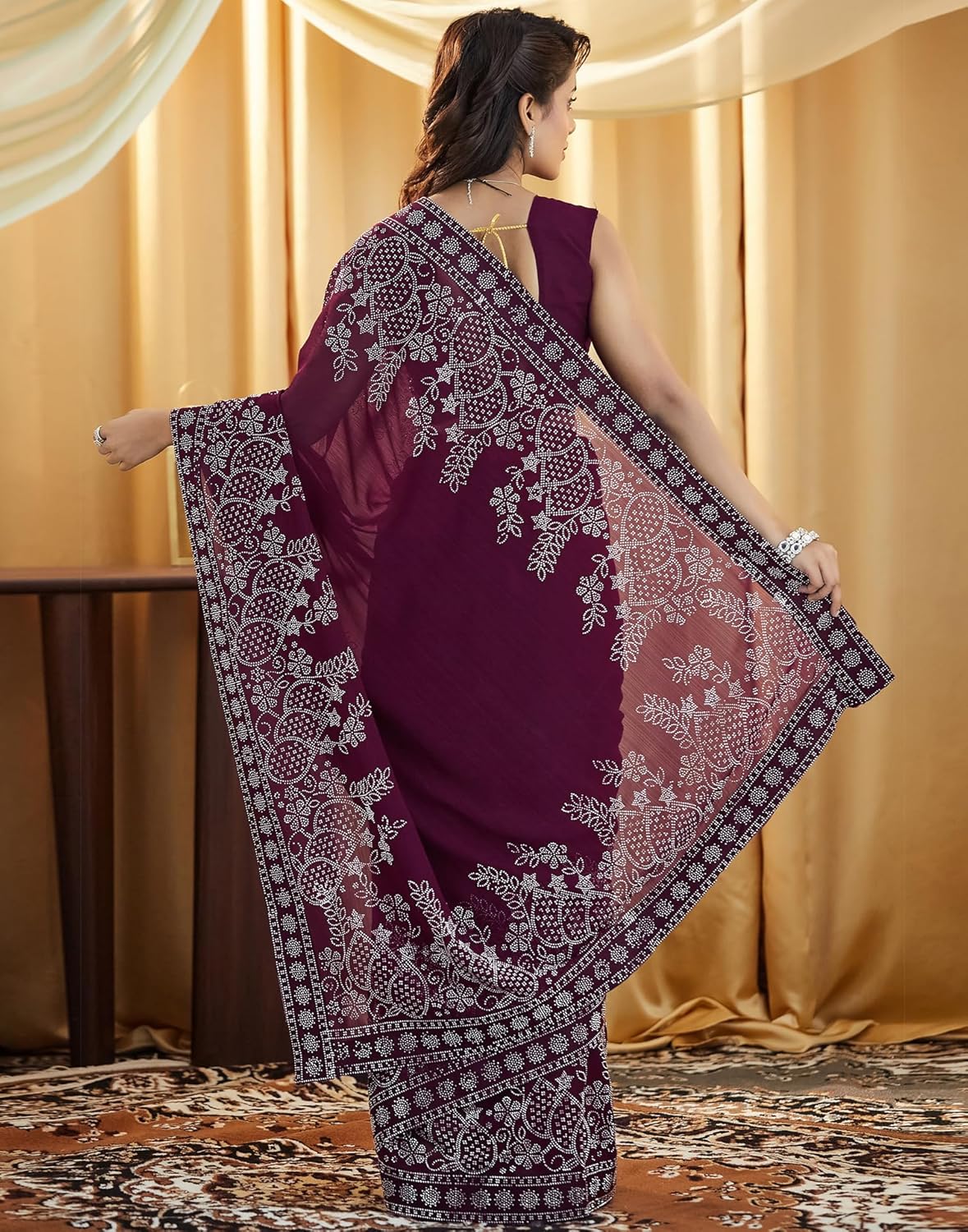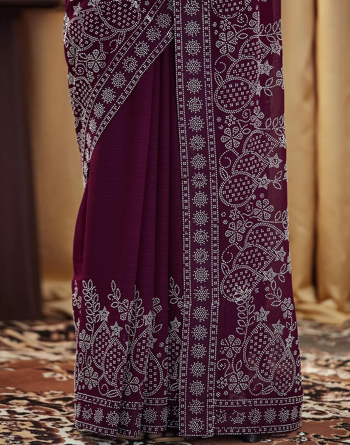 Satrani Women’s Georgette Stone Work Saree with Unstitched Blouse Piece by VintaVool