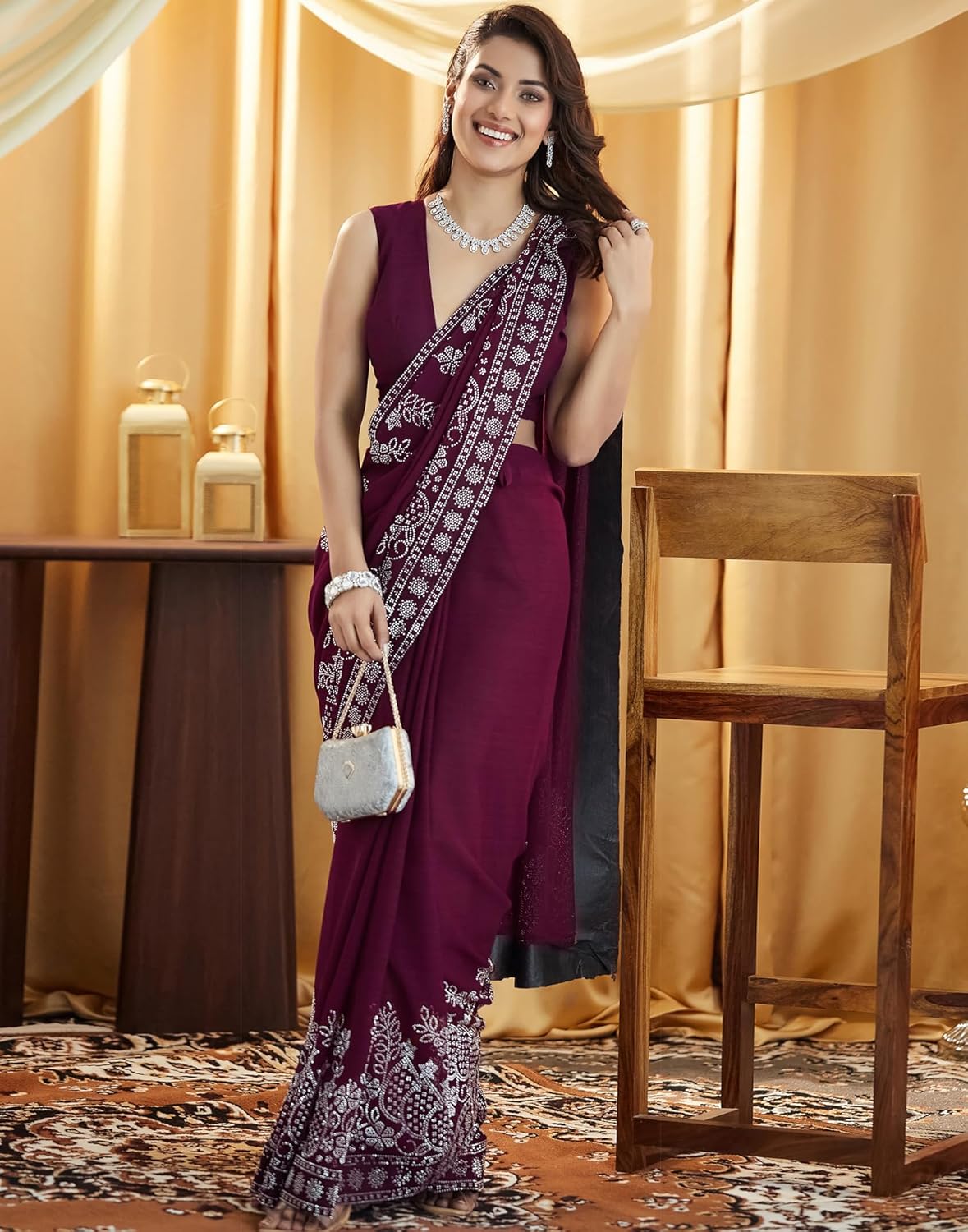 Satrani Women's Georgette Stone Work Saree with Unstitched Blouse Piece by VintaVool Original price was: ₹2,849.00.Current price is: ₹899.00.