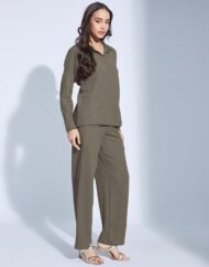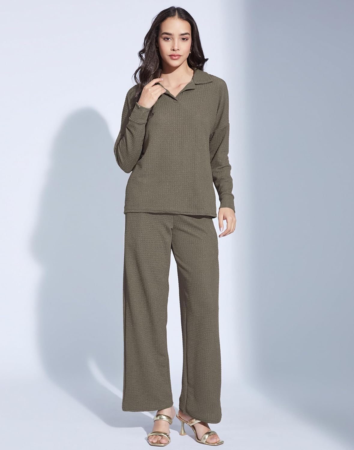 SIRIL Womens Lycra Solid Co-Ord Set | Textured Top And Pant Set | Two Piece Casual Wear Office Wear Co-Ord Set by VintaVool