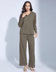 This co-ord set comes with a single breasted Top and Bottom Set which adds on to the utility factor in the same pattern. The Textured co-ord set is patterned in a way which gives an elongated effect. Perfect for your daily office wear and can be layered and worn with anything.