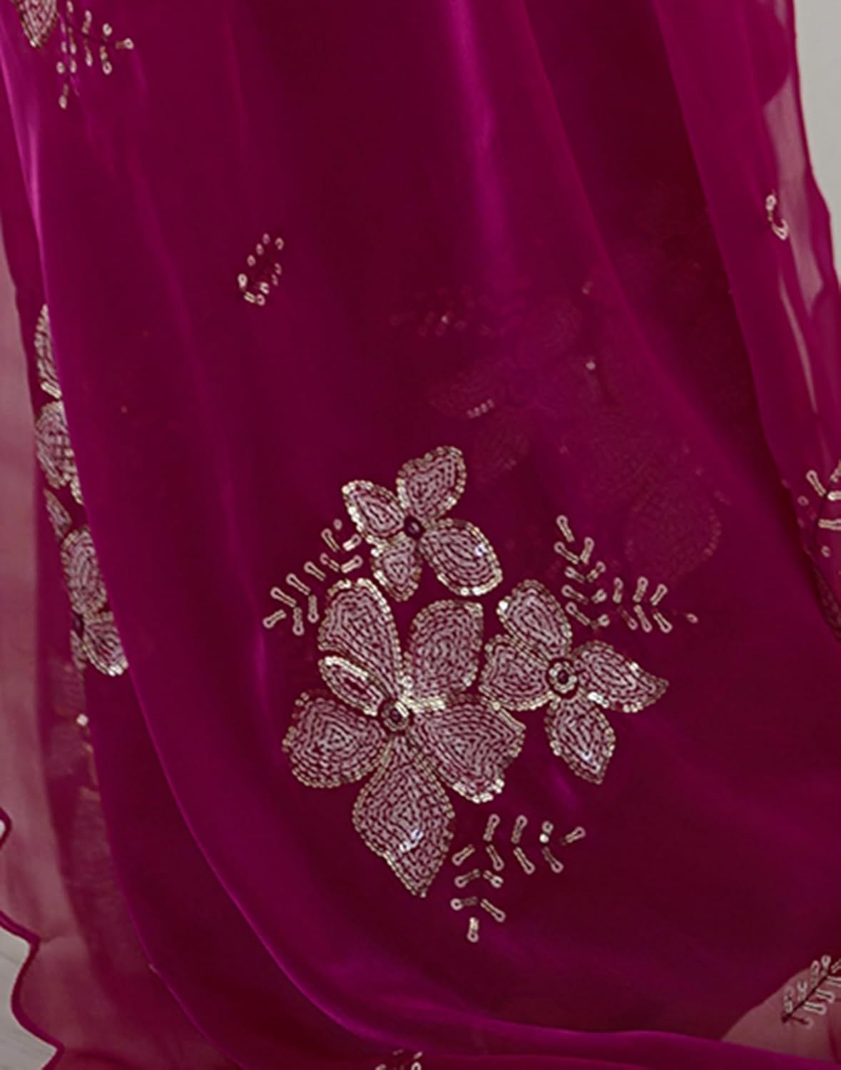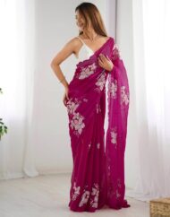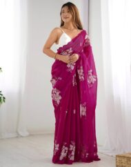 SIRIL Women’s Shimmer Chiffon Saree | Sequence Embroidery Saree With Unstitched Blouse Piece by VintaVool