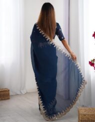 SIRIL Women’s Shimmer Chiffon Sequence Embroidery Border Saree With Unstitched Blouse Piece by VintaVool