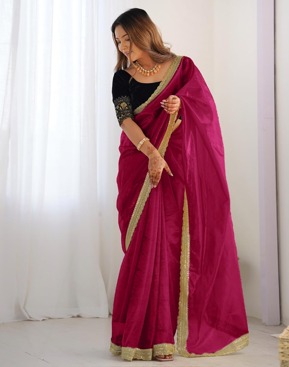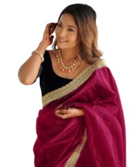 SIRIL Women’s Shimmer Net Saree | Sequence Embroidery Saree With Unstitched Blouse Piece by VintaVool