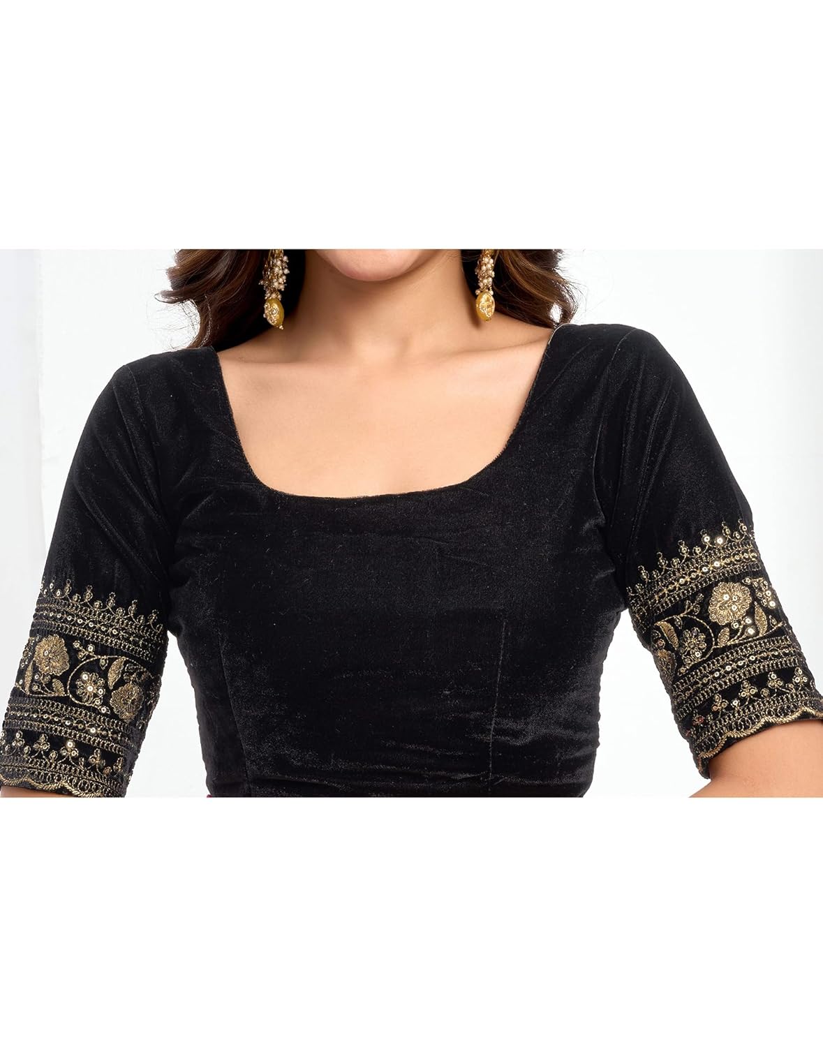 The fabric and design are beautiful. Beautiful embroidery on saree. The saree itself is stunningâgreat quality and vibrant colors that really stand out. It drapes beautifully and feels comfortable to wear.