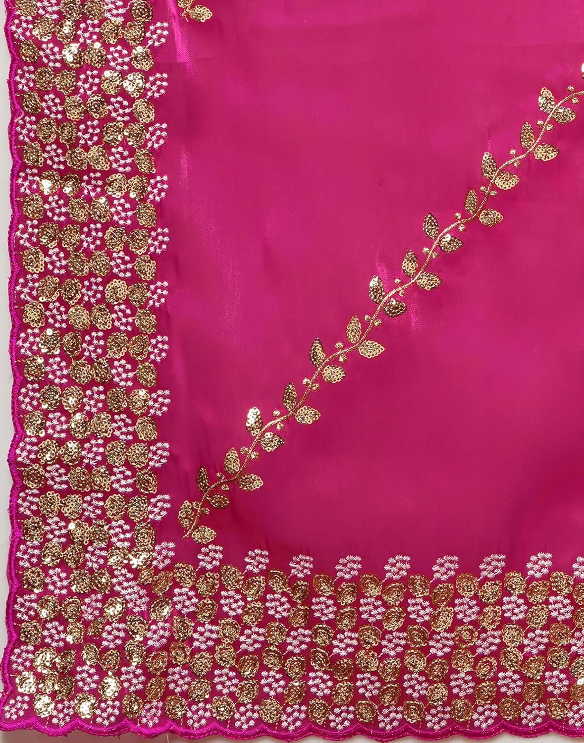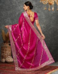 SIRIL Women’s Tissue Silk Sequence Embroidery Scalloped Border Saree With Unstitched Blouse Piece by VintaVool