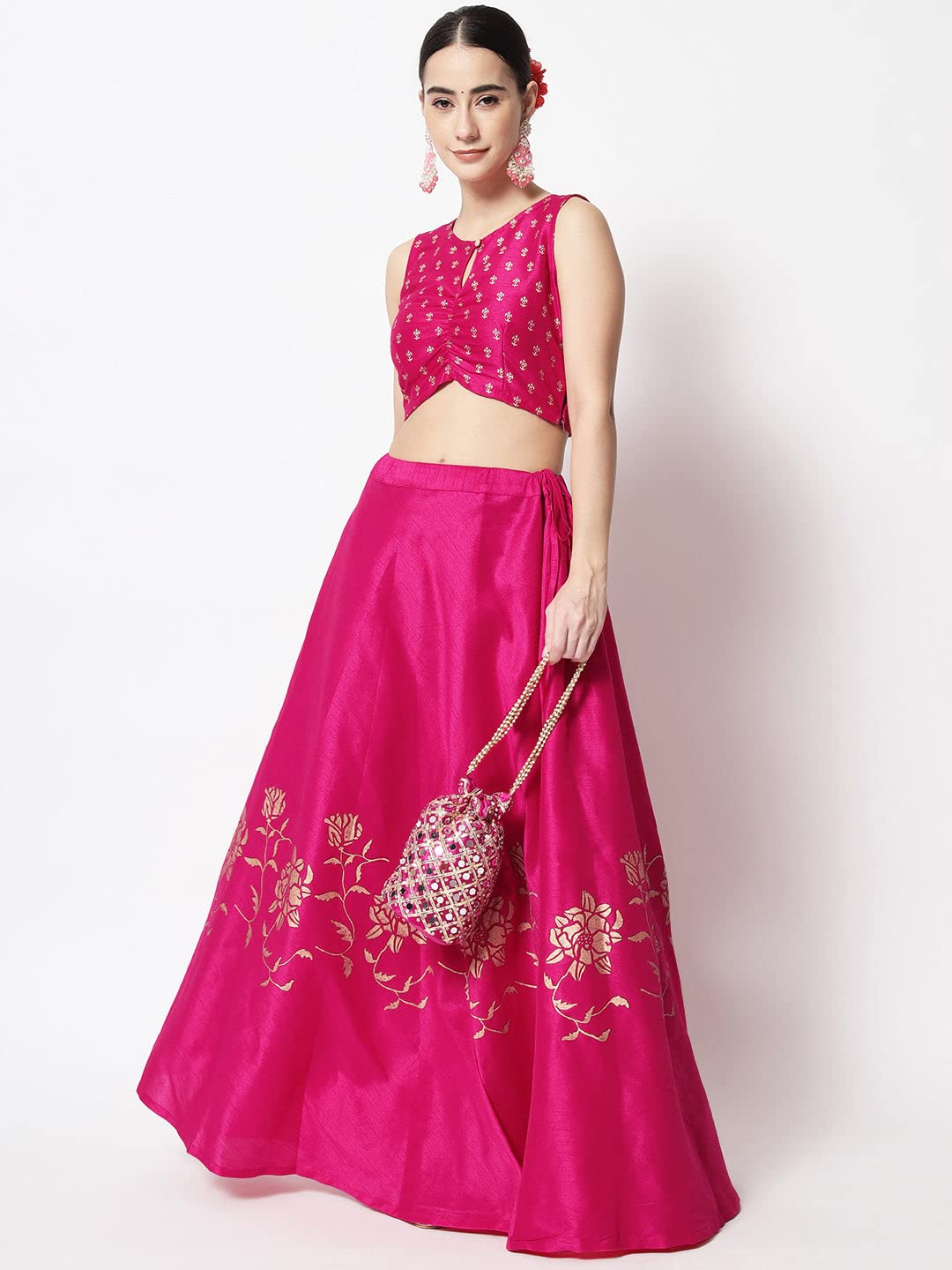 studio rasa Women’s Silk Blend Block Printed Crop Top for Wedding Festive Party by VintaVool
