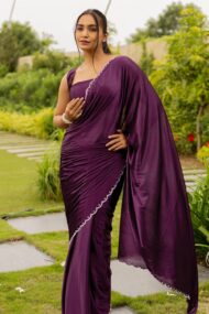 The rich wine color of the saree exudes warmth and elegance, making it suitable for evening wear and festive occasions. This timeless color complements a variety of accessories and can be styled in many ways.