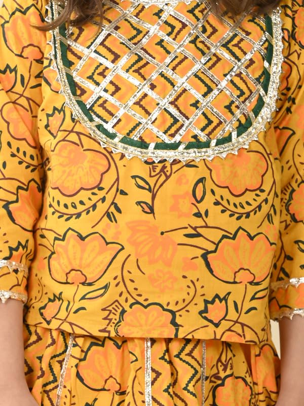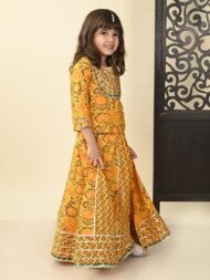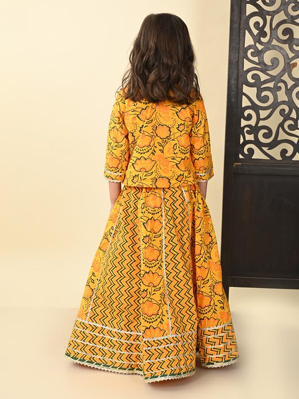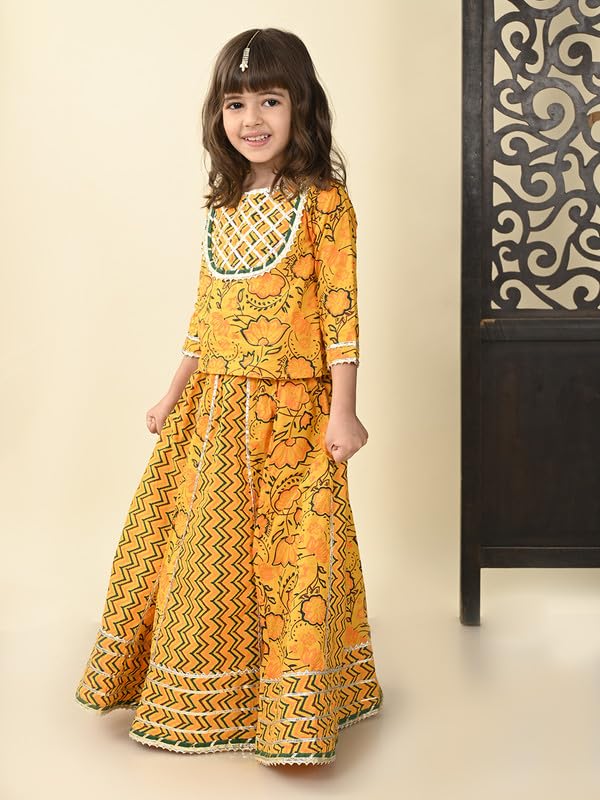 superminis Girl’s Cotton Sliver Yoke 3/4 Sleeves Ethnic Printed Choli With Kali Style Readymade Lehenga Set by VintaVool