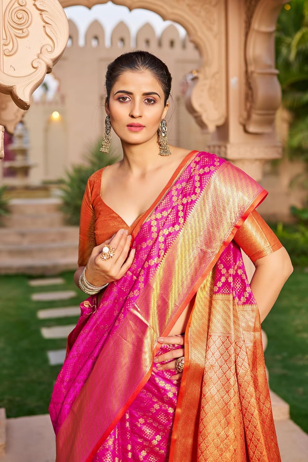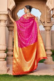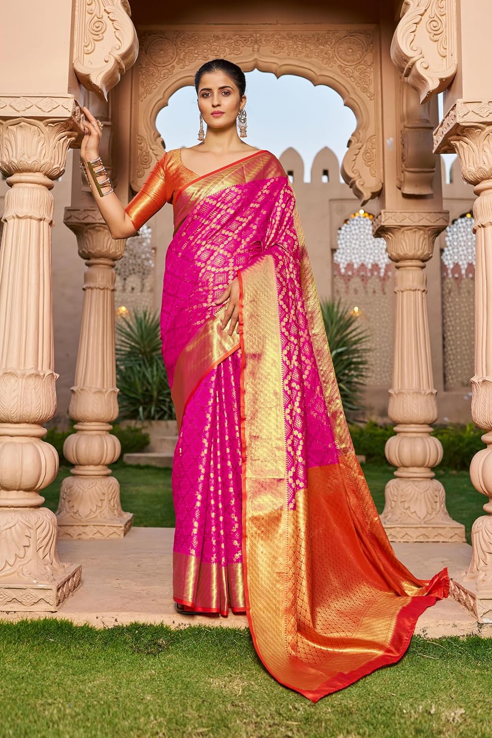 SWORNOF Women’s Patola Silk Saree With Unstitched Boluse Piece by VintaVool