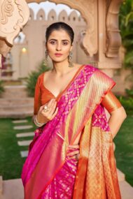 Customers praise the saree’s rich fabric quality, luxurious feel, and versatility for weddings and festivals. The saree receives positive feedback for its length, weight, and value for money, with one customer noting it’s easy to match with different blouses. The color receives mixed reviews, with some customers finding it looks old-fashioned.