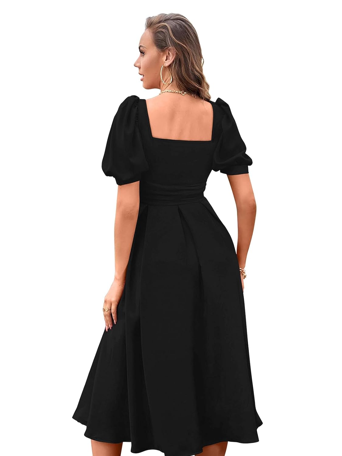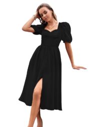 TESSAVEGAS Women’s A-line Midi & Maxi Sweetheart Neck and Square Back with Leg Spilt Cut and Puff Sleeve Dress by VintaVool