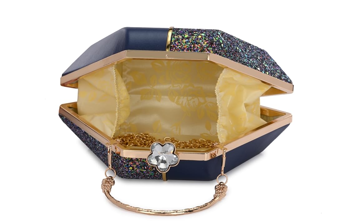 Design & Material The clutch is typically rectangular or box shaped offering a structured and sophisticated look. The hand embroidery often includes floral or abstract patterns using fine threads and sometimes adorned with sequins beads or mirror work.
