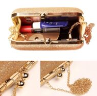 Customers find the clutch purse to be of good quality and appreciate its style, with one noting it looks like a real gold clutch. The bag is spacious enough to fit phones and lipsticks, and customers consider it perfect for weddings and parties. However, the glitter quality receives mixed reviews, with several customers reporting that the glitter falls out. Additionally, the closure mechanism has issues, with customers mentioning it doesn’t close properly.