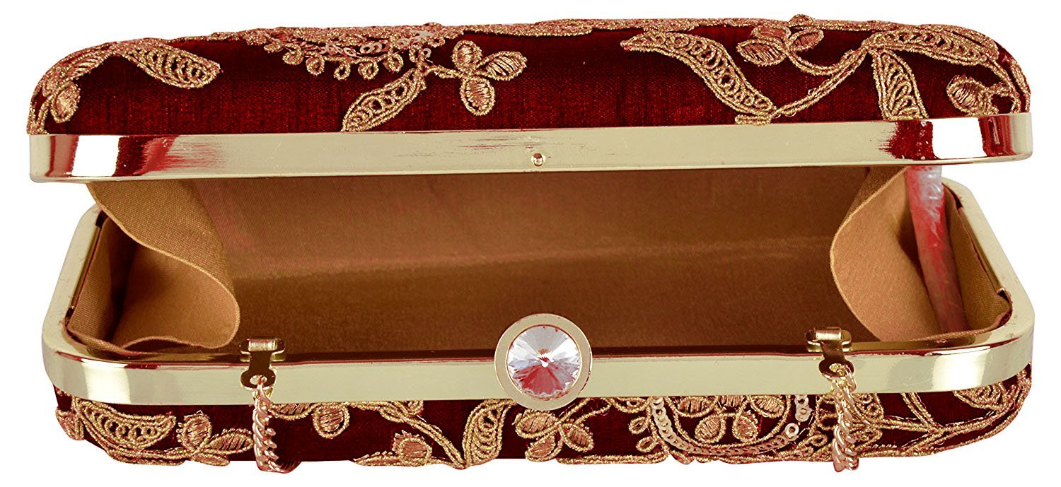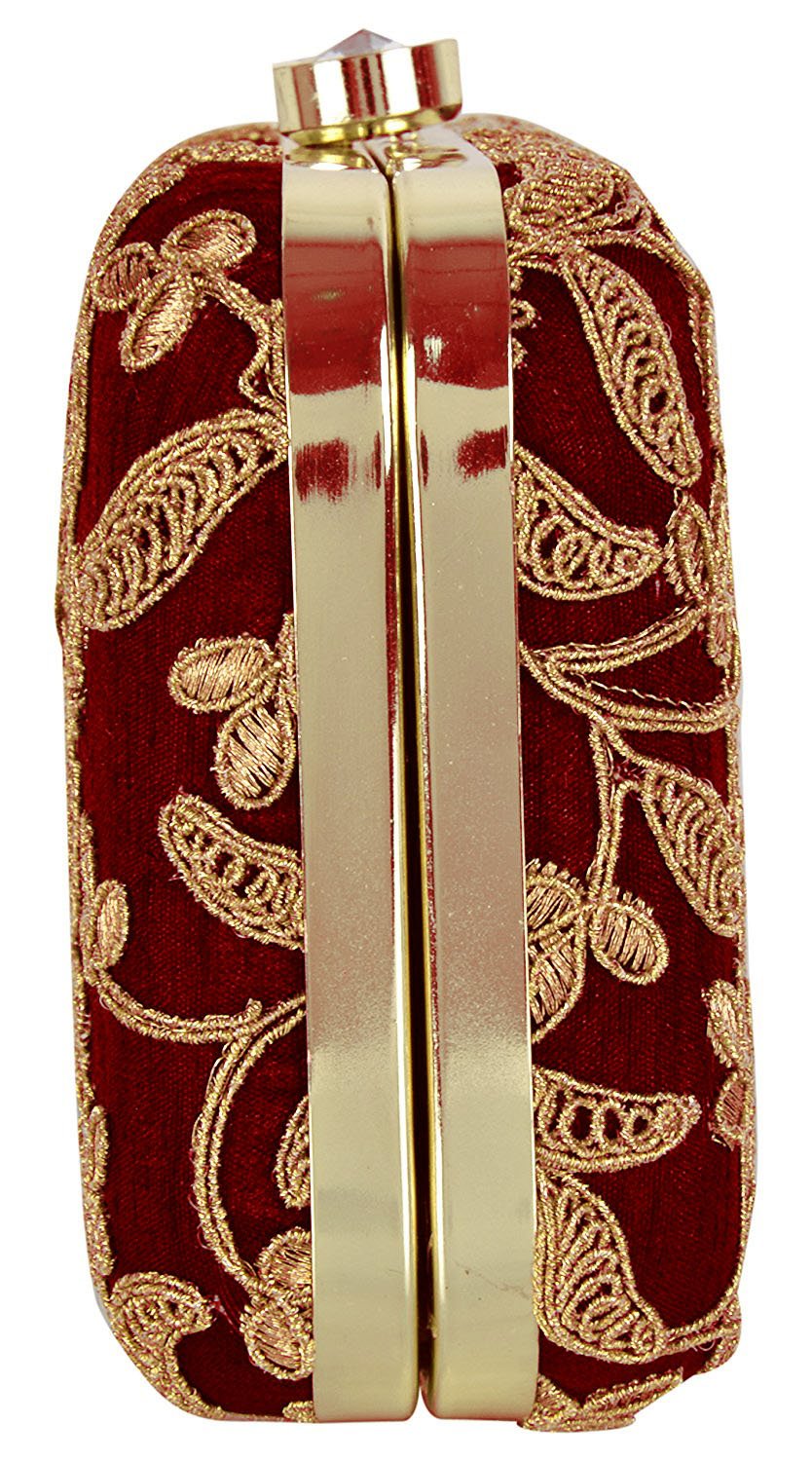 TOOBA Women Handicraft Hand Embroidered Box Clutch Bag Purse For Bridal, Casual, Wedding by VintaVool