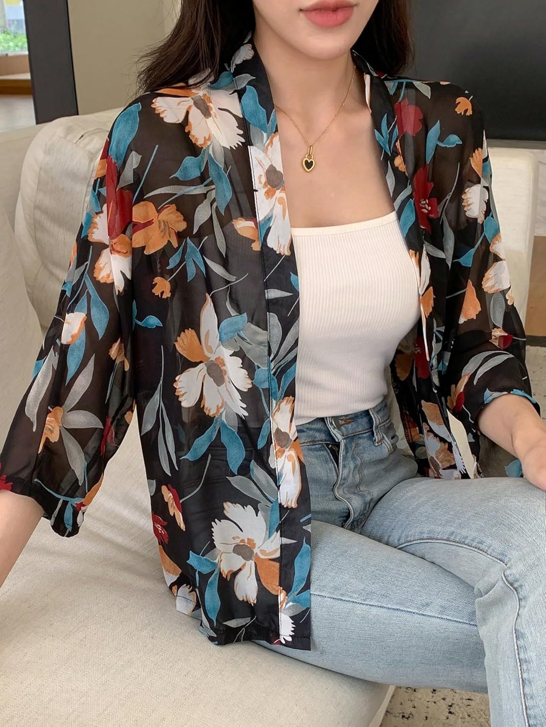 TOPLOT Women’s Front Open Floral Printed Shrug Top Regular Fit by VintaVool