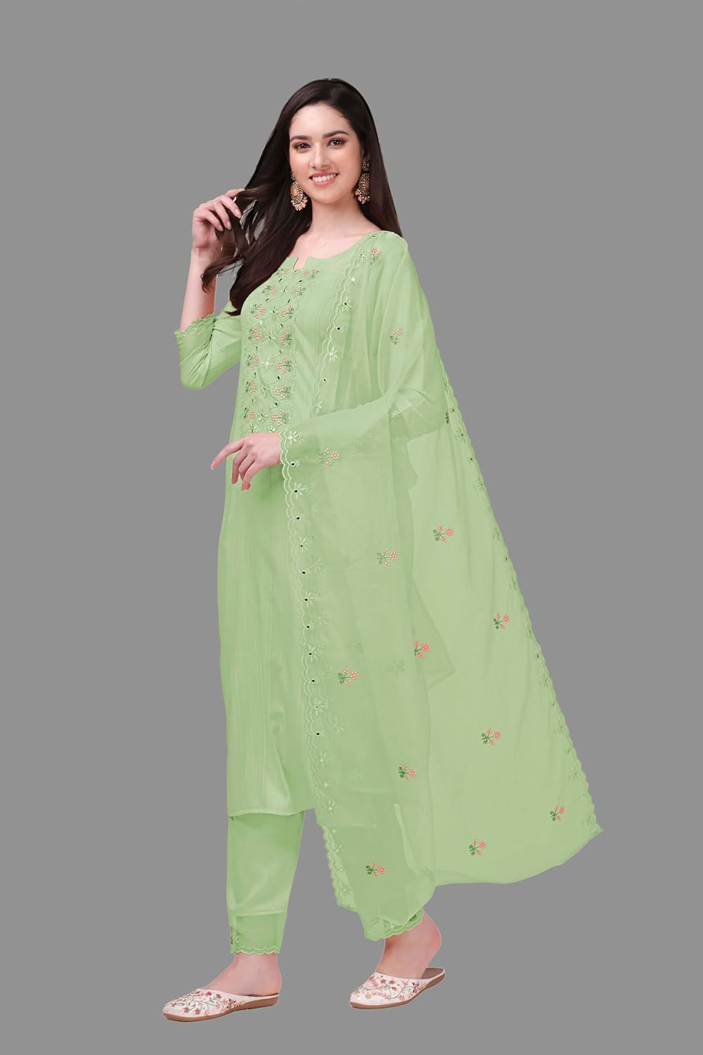 TRENDMALLS Women’s Cotton Embroidery Salwar Suit Set Kurta Pant with Dupatta Kurta Set for Women by VintaVool