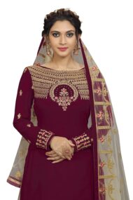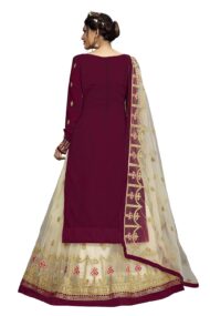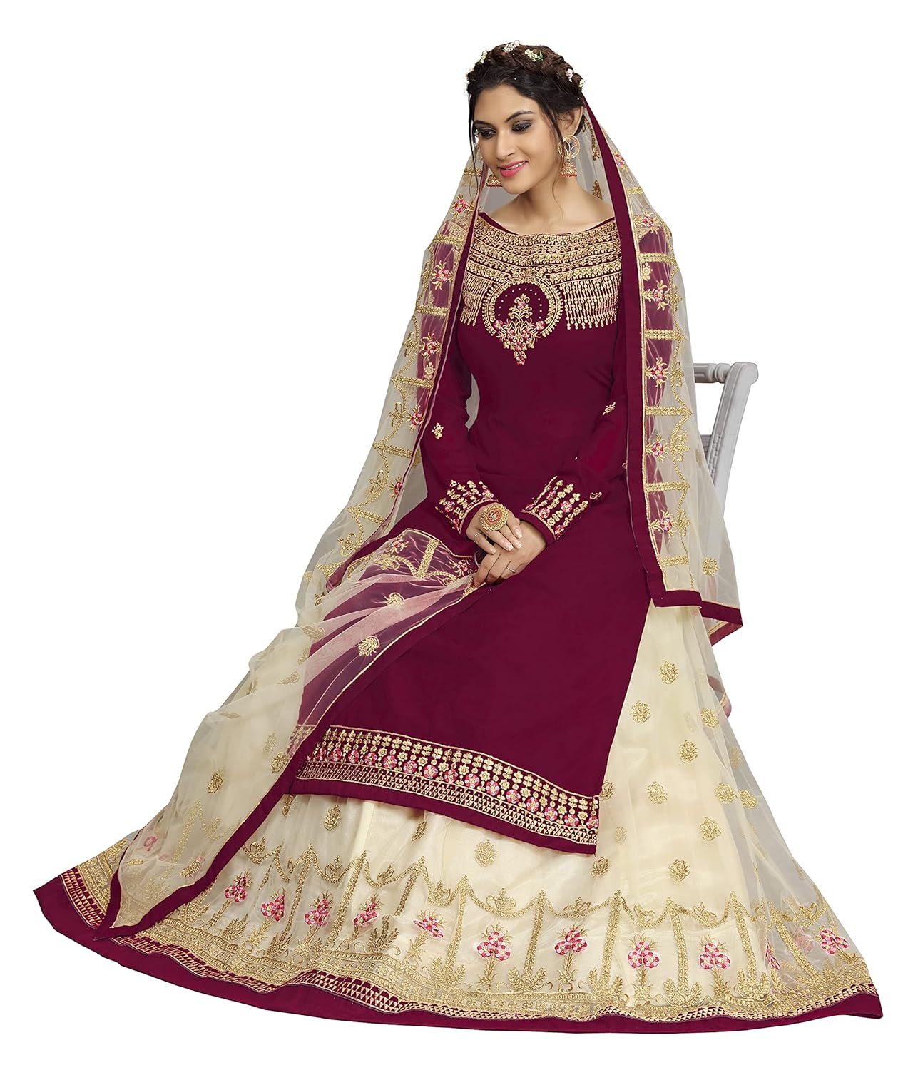 TRENDMALLS Women’s Georgette Net Embroidery Salwar Suit Set Kurta Lehenga with Dupatta Maroon by VintaVool