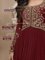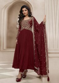 TRENDMALLS Women’s Silk Blend Embroidery Anarkali Kurta Pant Set with Dupatta by VintaVool