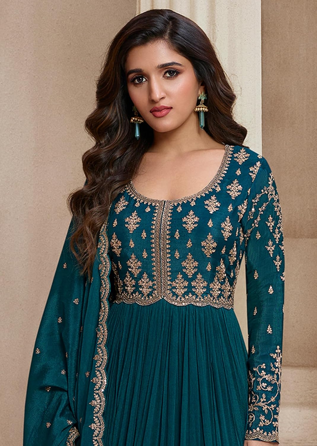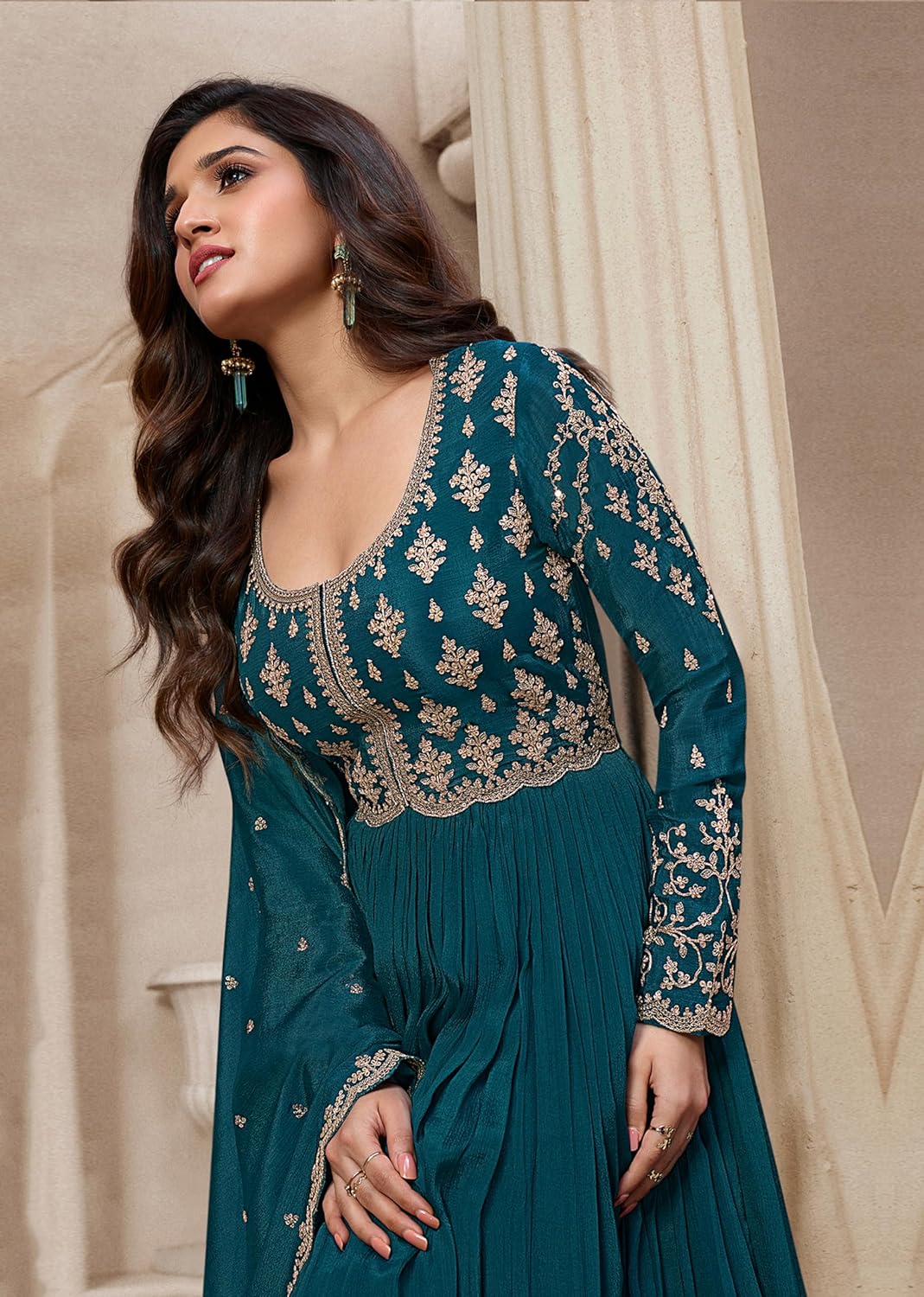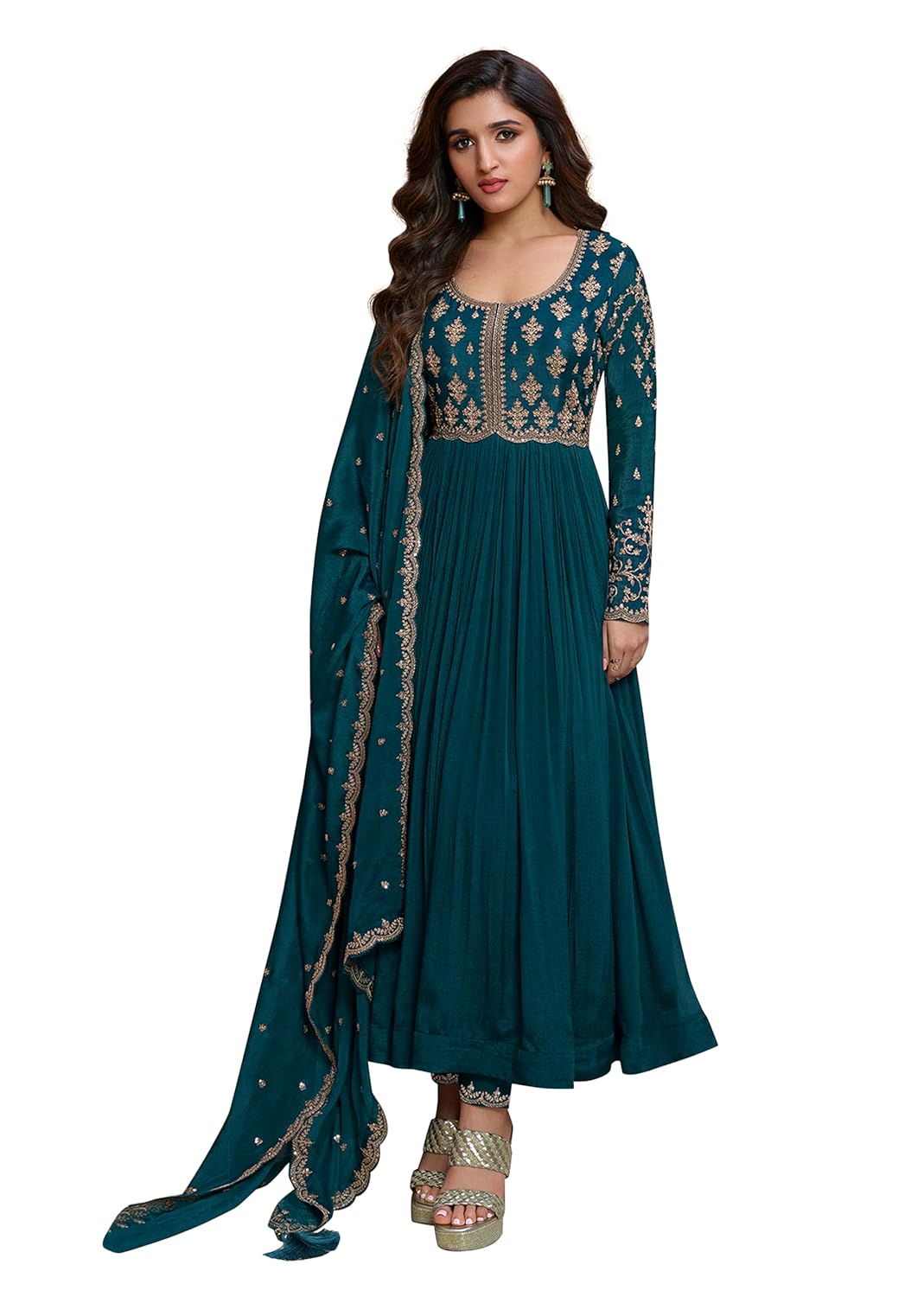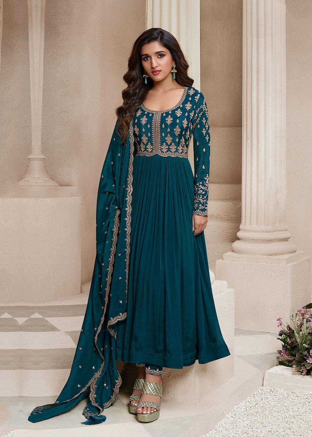 TRENDMALLS Women’s Silk Blend Embroidery Anarkali Kurta Pant Set with Dupatta Salwar Suit Set for Women by VintaVool